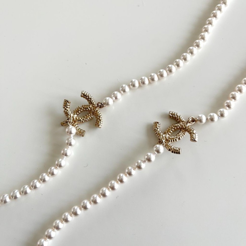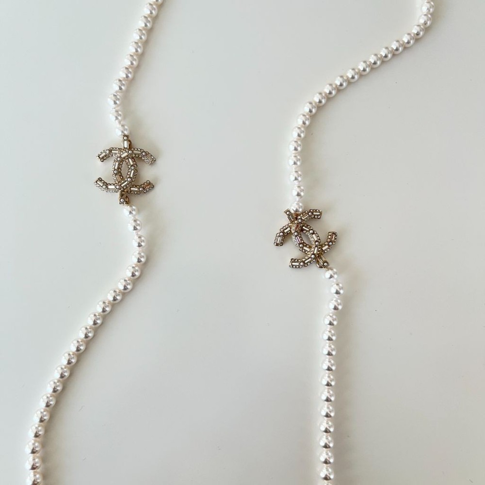 Chanel Faux Pearl CC Long Necklace Attributes Material : Faux Pearl Color : White Condition Desc. : Excellent; no flaws Comes in a plain unbranded pouch and box