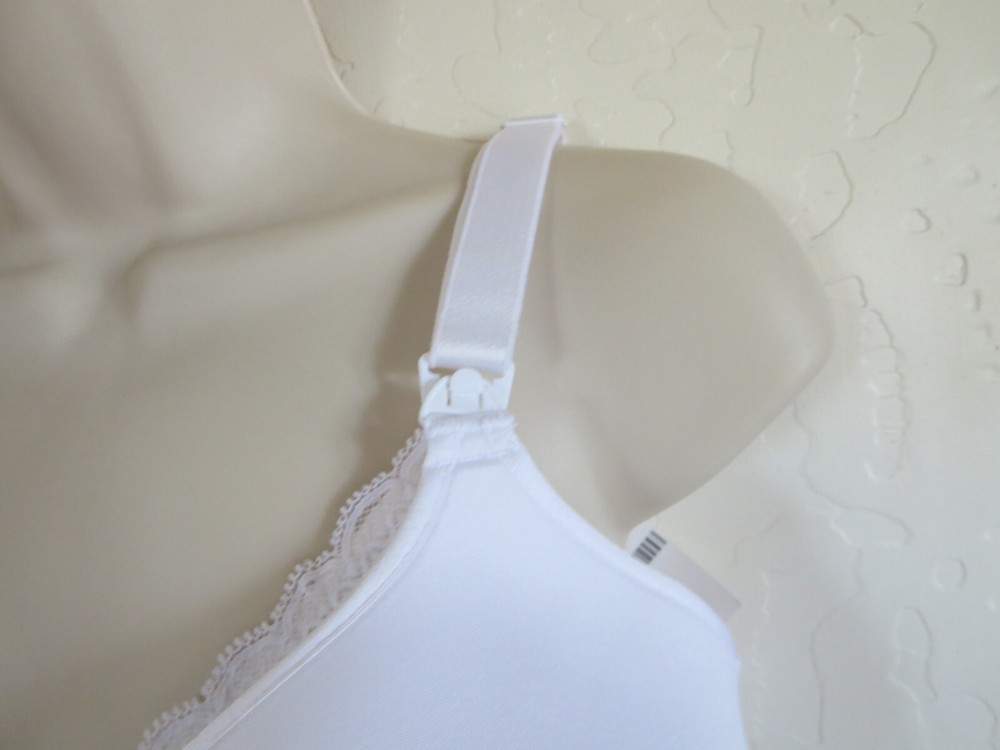 This nursing bra is a dream—super comfy with light spacer foam that breathes well while offering great support. The flexible underwire moves with you, and the soft cups make nursing easy. True to size, and the four-row hooks ensure a secure fit. Perfect for all-day wear! From a smoke-free home and brand new with tags. Love it!