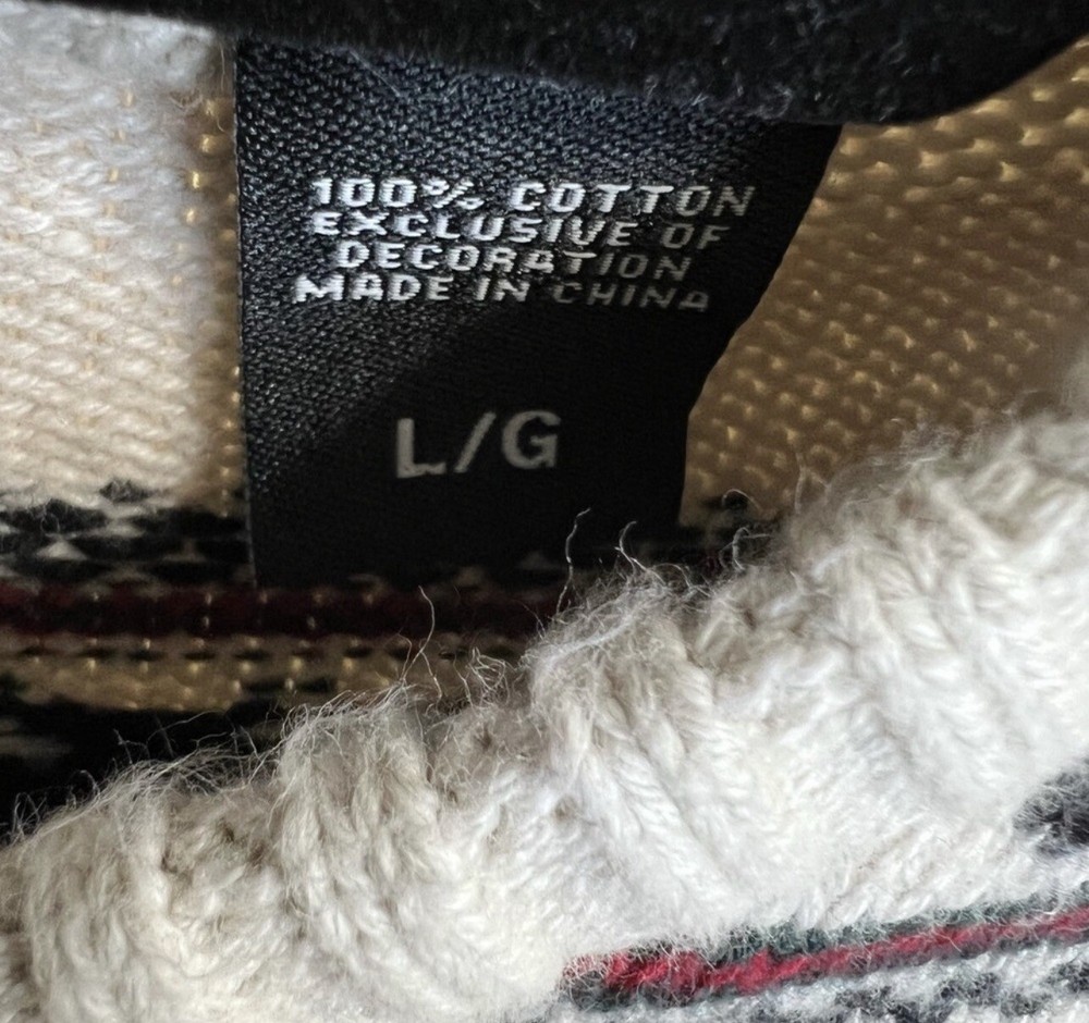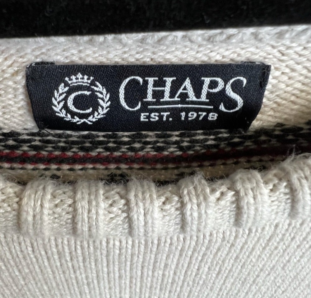 Chaps Logan Christmas Sweater Men’s L Heavy Red Cream Pattern Pullover Crew Neck Sweater is in good pre-owned condition. No defects or stains. Smoke free and pet free home. 100% cotton material. Pit-20.5”, length-26”, and sleeve-25”. We list new stuff everyday! Feel free to send offers anytime! Please review all pictures and ask any questions you’d like before purchasing! Shipping next business day! Get ready for the holidays with this Chaps Logan sweater. This multicolor, geometric-patterned sweater features a crew neckline, long sleeves, and a tight-knit style. 103-5
