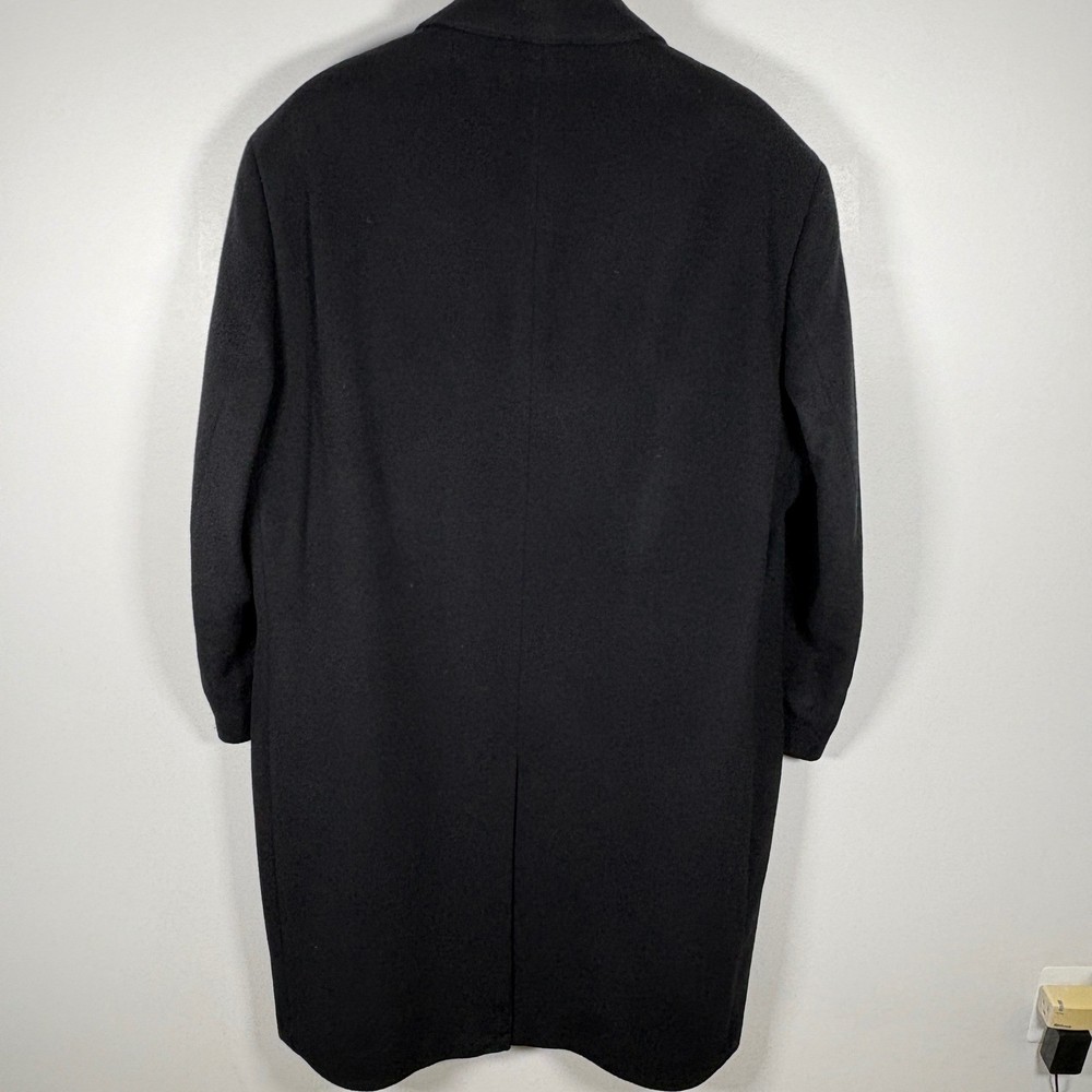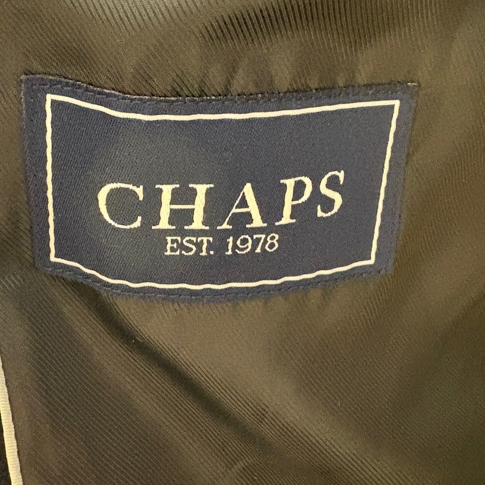 Command attention with this classic Chaps black wool blend overcoat. Experience refined style and exceptional warmth with its timeless design. Still has great black color & very clean. Size tag missing, but measurements are similar to Men's large. Pit to pit - 24" Sleeve - 25" Length - 45" Shoulder Width - 20.5" Type: Coat Style: Overcoat Outer Shell Material: Wool Department: Men Closure: Button Fabric Type: Tweed Insulation Material: Wool Occasion: Business, Formal Accents: Button Collar Style: Spread Country of Origin: China Features: Collared, Lined, Pockets, Single-Breasted Fit: Classic Garment Care: Dry Clean Only Keywords: Chaps coat, mens overcoat, black topcoat, wool blend, classic, tailored, sophisticated, winter wear, business casual, formal, outerwear, mens fashion