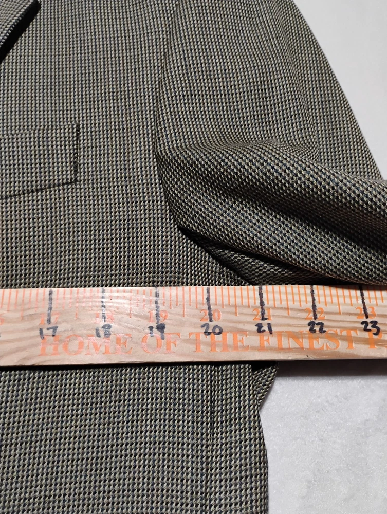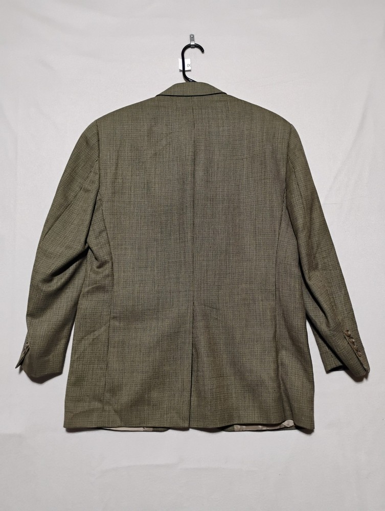 Pattern: Check Material: Wool, Polyester Jacket Front Button Style: Two-Button Chest Size: 46 Jacket Cut: Single-Breasted Department: Men Type: Sport Coat Jacket Lapel Style: Notch Lining Material: Polyester Color: Green Country of Origin: Vietnam Style: 2 Piece Theme: Classic, Preppy Brand: Chaps Size Type: Regular Fabric Type: Tweed Size: 46 Jacket/Coat Length: Long Number of Pieces: 2 Piece Occasion: Business, Formal, Wedding Fit: Classic Vintage: No