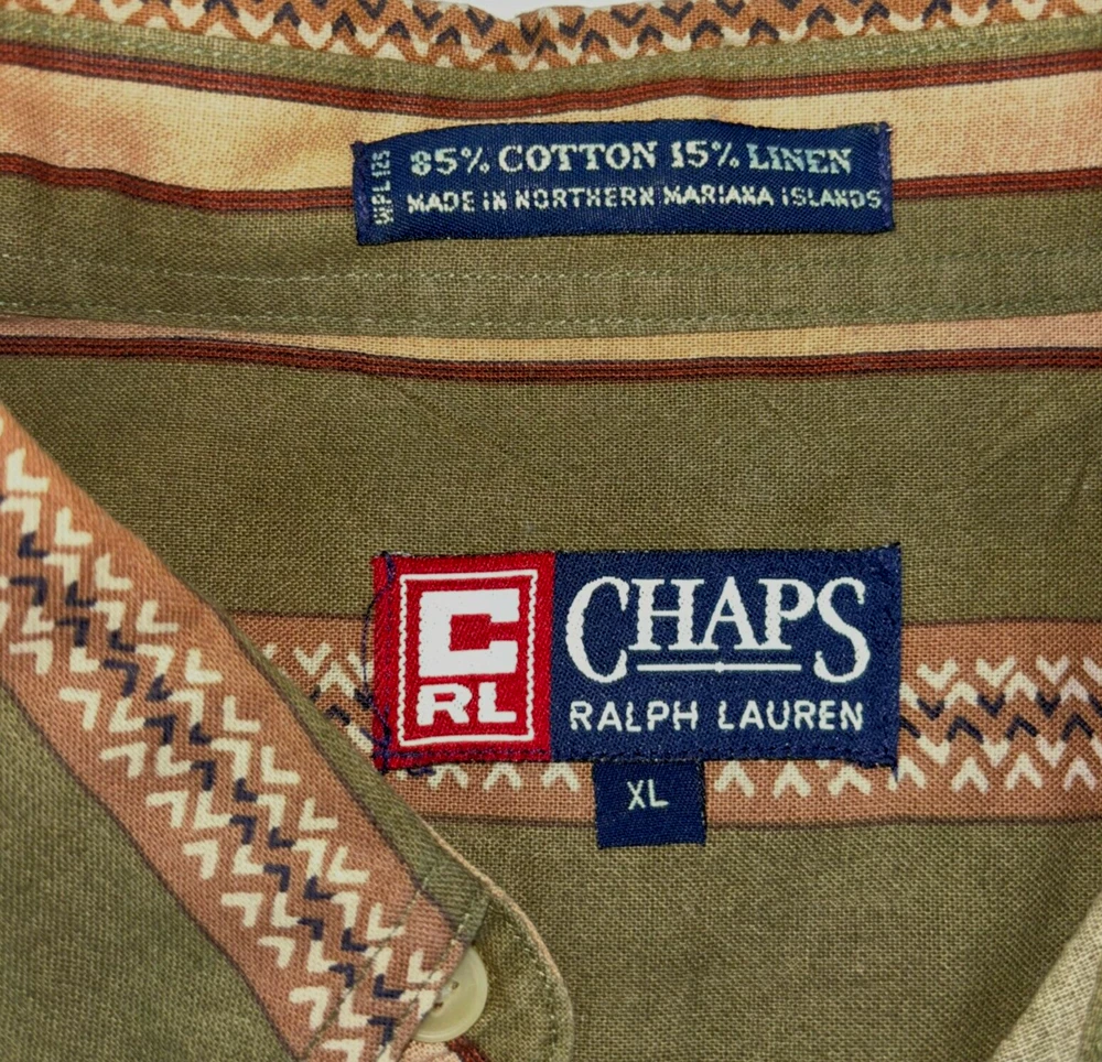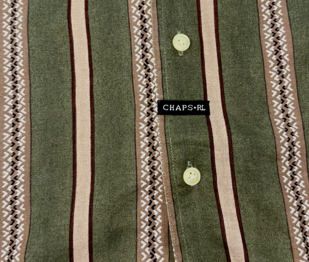 Chaps Ralph Lauren Shirt Green Geometric Striped Long Sleeve Pocket Button Up XL Please refer to photos for the most accurate measurements, description, and estimation of the item's condition. We’re happy to answer any questions or provide additional photos before purchase if requested! All items are sold as is and we try our very best to note any issues with condition in both our description and close up photos. Please remember that colors can look different across different devices and monitors. Condition: Please see photos for measurements. Any further measurements needed? Just ask! EUC Pre-Owned: shows minimal to no signs of wear, as expected with typical well cared for use such as slight fading of colors with age. Please make sure to double check measurements for the best representation of fit, as brands can vary in sizing. Comes without sales tags, dust bag, or brand box. Will it Fit Check? Please reference the listed measurements (in photos and/or text) before purchasing. Fit check tip: Grab your favorite similar style item at home, lay the garment on a flat surface, and measure shoulder to shoulder, the width (armpit to armpit), and length (top to bottom). Then compare your measurements to those in our listing! If you need any further measurements not noted in the listing, please feel free to request, we will get back to you asap. FAST SHIPPING! Orders are usually shipped within 24 hours M-F Friday orders will ship Monday morning at the latest, unless there is a postal holiday. Feel free to send us a message before purchase if you?d like a certain delivery service or combined shipping offers. Still got Questions? Send us a message! We do our best to accurately and thoroughly represent each item in images and condition description, but, if there's any further information you'd like before purchasing or have a shipping request, please don't hesitate to ask and we'll get back to you asap. RETURN POLICY: Please reach out prior to purchase with any questions or shipping requests. Returns are accepted within 30 days, buyer pays return shipping. Refund issued upon receipt of item in original condition. Full refund (minus original shipping) will be issued once we receive the item assuming it is in the exact same condition as it was shipped.(Clean, unaltered, tags still attached if item was new with tags, etc.) We request that you select "Item does not fit" when returning an item that does not fit. Thank you for shopping small and supporting our lil' Rodeo!
