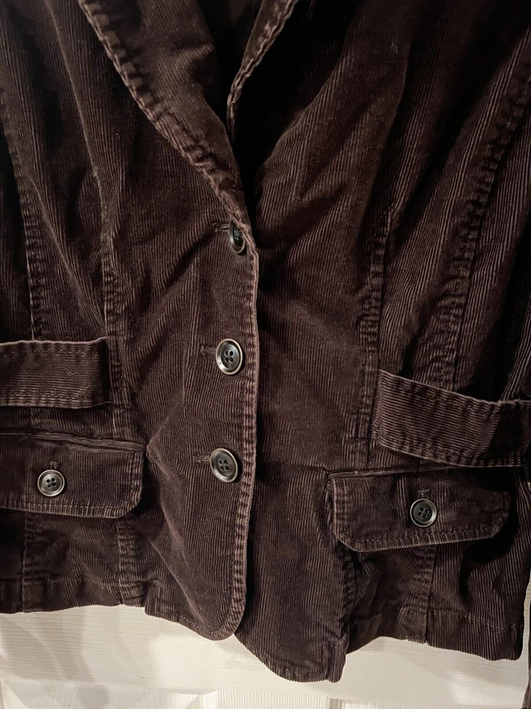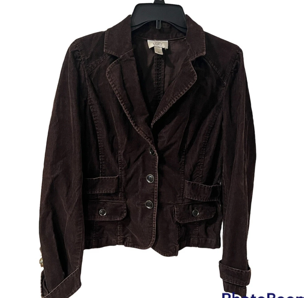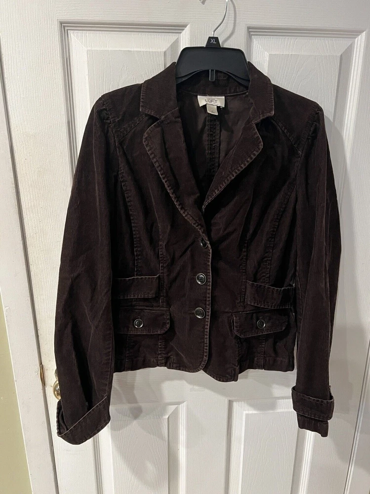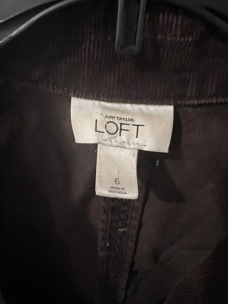 Ann Taylor LOFT Brown Corduroy Button Front Jacket Women Size 6. Pit to pit measures approx 19 Shoulder to hem measures approx 23 Please note the tag is not dirty. I have washed it but it seems it may have been originally from color transfer.