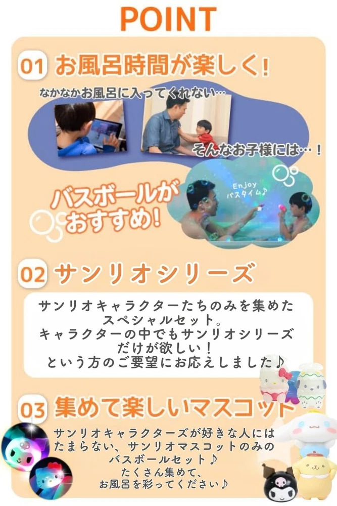 c1egr3tww7 Thank you for visiting! This store sells products regularly every day. Click "♡Save Seller"! We will send you a message when new products are posted. If you have any questions, please feel free to contact us. We will respond promptly within 24 hours. [ Description ] Character Sanrio Bath Ball Random Limited Time Item 5 Piece Set Schwatama No.253 An assortment of Sanrio character bath balls Assorted 5 random Sanrio bath balls ☆ This is a limited edition design only set, so the glowing series is not included. Character: Sanrio sanrio (Hello Kitty, My Melody, Kuromi, Cinnamoroll, Pompompurin, Hangyodon) Number of sets: 5 (randomly selected *Sets only available in limited time series) Popular types There is no doubt that your daily bath will become more enjoyable♪ Introducing an assortment of cute bath balls featuring Sanrio characters☆ This is a special set available only for a limited time series, so please give it a try♪ There are plenty of Sanrio characters in hotel vacations, dinosaur designs, relaxed poses, etc.☆ Sanrio characters that are a little different from the usual. Please enjoy it♪ Find out what comes out after taking a bath! You can play together, so please come to bath time for parents and children ♪ [Caution: Customs duties] Purchases on eBay are personal imports. Customs duties are always charged if the import amount exceeds the set amount for each country. Example: Over 800 USD in the US, over 15 USD in Canada, over 174 USD in Germany (If you would like to know in advance, please feel free to contact us) - If the customs duties are not paid, the item will not clear customs and will be returned to Japan. In that case, the customs duties and return shipping fee will still be charged to you. Therefore, if you are contacted by the delivery company to pay the customs duties, be sure to complete the payment within 3 days. - eBay does not allow cancellations due to refusal to pay customs duties. Therefore, if you do this, the product price will not be refunded, even if you refuse to receive the product. - Customs duties are not included in the product price. Due to ebay rules, these charges are 100% buyer's responsibility. * Description Authenticity: 100% AUTHENTIC! We have multiple items in stock. To avoid troubles, please purchase the product after you understand and confirm the condition of the product. [ About Outlet Products ] Outlet products are available as well. It is possible that materials, fabrics or other details of these items may be different from the original ones even if they have the same model numbers. In addition, it may happen that some stains or scratches cannot be repaired. Please note that outlet products will not be acceptable for after-sales service. Thank you for your understanding. [ Country of Manufacture ] If there is no description of Made in Japan on the listing page, Products are manufactured in other countries (other than Japan, such as China and Vietnam). [ Manual & Menu Language ] Most of our products are items used in the Japanese market. So the item only has Japanese manual and menu language. If you need a manual or menu in English or your country's language, please obtain it yourself from the official website. [ Electronics ] Japan Voltage : 100V Please check your country's voltage before order. Buyer may need down transfomer to use our item, Because most of country's voltage is higher than 100V. Plug: TypeA Please check your country's plug. Buyer may need exchange plug. [ International Buyers - Please Note ] Import duties, taxes and charges are not included in the item price or shipping charges. These charges are the buyer's responsibility. Please check with your country's customs office to determine what these additional costs will be prior to bidding/buying. These charges are normally collected by the delivering freight (shipping) company or when you pick the item up - do not confuse them for additional shipping charges. We do not mark merchandise values below value or mark items as "gifts" US and International government regulations prohibit such behavior. [ Shipping Method ] Free shipping worldwide with tracking number.FedEx, DHL and etc Fast Shipping2-5 business days after shipping(Tracking number + insurance.)