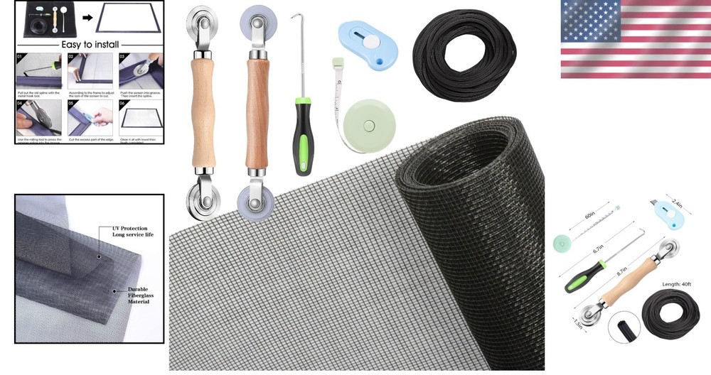 Charcoal Fiberglass Mesh Screen Repair Kit 48"x118" - Quick Install Solution ‹ › ‹ › ‹ › ‹ › ‹ › ‹ › ‹ › ‹ › Charcoal Fiberglass Mesh Screen Repair Kit 48"x118" - Quick Install Solution Features: All tools included: window screen, rolling screen tool, screen retainer spline, knife, spline remover hook, and tape measure. Installation completed in just 10 minutes with simple four-step instructions. Made with fiberglass mesh for durability and long life, lasting at least five . Allows clear views while promoting smooth air circulation and keeping out insects and mosquitoes. Screen mesh can be washed and exposed to sunlight for easy maintenance. Tool Kit Advantages: 40ft spline designed for high tensile strength, ensuring a secure fit. Screen roller tool features a solid beechwood handle with double steel bearing metal wheels for smooth operation that won’t scratch the screen. Spline hook for effortless removal of old spline. Utility knife and tape measure to streamline the replacement process. Wide Applications: Ideal for various screen doors, screen windows, sliding door screens, patio screens, garden screens, pool screens, storm doors, porch screens, terrace screens, RV screens, entry doors, and patio doors. Conveniently replaces old screens and damaged mesh, even those scratched by pets. Why Choose Our Repair Kit? Say goodbye to expensive screen replacements and embrace the convenience and effectiveness of our Charcoal Fiberglass Mesh Screen Repair Kit. Each high-quality component is designed for easy installation and long-lasting performance. You’ll also appreciate the clarity of the view it provides, along with improved airflow while effectively keeping unwanted insects at bay. This comprehensive kit is the perfect solution for a variety of applications, ensuring your home remains a comfortable sanctuary. Don’t let torn window screens disrupt your peace at home—get your Charcoal Fiberglass Mesh Screen Repair Kit today and experience the difference! Shipping Free & Fast Shipping - We offer free shipping to most of the USA with a normal delivery time of 3-7 days. However, due to the current situation, additional delivery time (up to 3 weeks) may be required for some items. Alternative Carriers - We may use alternative carriers (e.g. USPS, FedEx, UPS, etc.) to ensure your package arrives safely and on time. Due to the use of multiple carriers, we are unable to provide a tracking number automatically. Handling Time - Orders are processed and shipped within 1-2 business days of receiving cleared payment. Shipping Restrictions - Shipping to Alaska, Hawaii, Puerto Rico, Guam, and other US territories may incur shipping charges or delivery restrictions. Please contact us before ordering, or your order can be refunded/cancelled. State Restrictions - There may be restrictions based on your state of purchase. For example, certain items may not be shipped to California due to state regulations. Contact for Tracking Updates - If you require tracking updates or have any concerns about the delivery of your order, please feel free to contact us, and we will be happy to assist you. Return 30-Day Hassle-Free Returns - We want you to be completely satisfied with your purchase. If you are not, you can return the item within 30 days of receiving it for a full refund or exchange. Easy Return Process - To start a return, simply contact us and we will provide you with a prepaid return shipping label and detailed instructions. Restocking Fee - There are no restocking fees for returns. However, the buyer is responsible for return shipping costs if the return is not due to a seller's error. Refund Processing Time - Refunds will be processed within 5 business days of receiving the returned item in its condition. Payment We accept all major credit cards, PayPal, and Apple Pay for your convenience. Your payment information is secure and encrypted to ensure a safe and seamless transaction. Please complete your payment within 3 days of purchase to avoid any delays in shipping. Feedback Your feedback is extremely important to us. We strive to provide the best products and customer service possible. If you are satisfied with your purchase, please take a moment to leave us a positive review. If you have any concerns or issues with your order, please contact us before leaving negative feedback. We are committed to resolving any problems and ensuring your satisfaction. Contact Us If you have any questions or concerns, please feel free to out to our customer support team. You can contact us through the eBay messaging system. We are available Monday to Friday, 9:00 am to 5:00 pm EST, and we will do our best to respond to your inquiry within 24 hours. Buy it now and enjoy a pleasant shopping experience! Model: Window Screen Repair Kit Unit Quantity: 1 Suitable For: Window Screen,Sliding Screen Door,Screen Door,Screen Windows,Sliding Door Screens,Courtyards,Patio Screens,Garden Screens,Pool Screens,Storm Doors,Porch Screens,Terrace Screens,RV Screens,Entry Doors,Patio Doors MPN: Window_Screen_Repair_Kit Material: Steel,Fiberglass,Beechwood Features: Durable,Easy To Install,High Tensile Strength,Smooth Rim,Double Steel Bearing Wheels,Washable,Sunshine Protection Color: Black Type: Window Screen Repair Kit Number in Pack: 1 Item Depth: 1.57 in Item Thickness: 0.1 in Item Weight: 1.63 lb Unit Type: lb