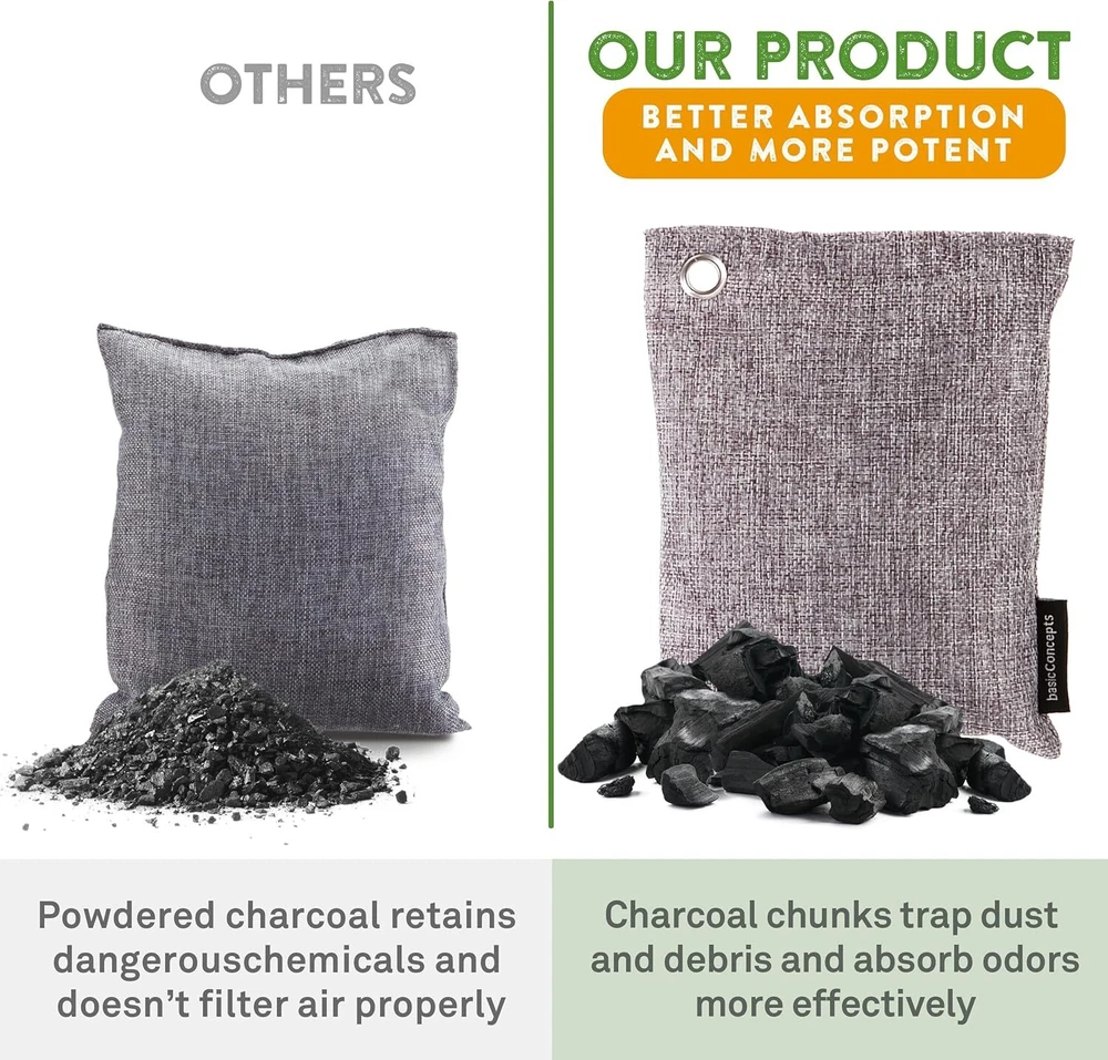 Charcoal Odor Absorber for Strong (6 Pack, 100g each), Bamboo Grey Product Details Is Discontinued By Manufacturer : No Product Dimensions : 13.11 x 9.69 x 3.03 inches; 2 Pounds Manufacturer : BASIC CONCEPTS Scent: Unscented Color: Grey Brand: BASIC CONCEPTS Item Form: Rectangular Power Source: Charcoal Remove Bad Odors - Freshen up your car, home or even shoes with our charcoal odor absorber. This bamboo charcoal air purifying bag act as a natural odor eliminator to remove unwanted smells. Think of your activated bamboo charcoal bags like sponges that absorb odor and freshen the air. This makes a perfect cat odor eliminator for home, basement odor eliminator, and air deodorizer odor eliminator. 6x Nature Fresh Charcoal Bags Odor Absorber - A professionally designed, bamboo charcoal air purifying bag can transform the air you breathe. Other activated charcoal bags use low-grade charcoal to save money. Our musty basement odor eliminator for dust removal will make your shoe, closet, and room smell terrific. A good charcole deodorizer can make a world of difference for your house. This is the best closet odor absorber and eliminator, and odor neutralizer for musty odors. 10x More Porous - Air purifying bags with natural bamboo charcoal are 10x more porous than regular charcoal. That means when you buy our odor eliminator, you'll be getting one of natures’ most potent and effective charcoal air freshener solutions! So, get yourself an activated charcoal odor absorber pack that gets the job done right. Bamboo charcoal bags odor absorber means no more foul odors in your car, home, litter box, or gym bag. Supercharge the air you breathe! ☀️ Rejuvenate For Up To 2 Years - Each one of your six charcoal bags odor absorber for strong odor weighs about 100g each. The breathable design of your charcoal air freshener bags make them easy to use in the basement, bathroom, refrigerator, drawer or sneaker! Rejuvenate your bamboo charcoal bags every month — place your naturefresh charcoal bags in the sunlight for a couple of hours. This process off-gases all of the odors that bamboo charcoal bags have absorbed, making them like NEW. ⛰️ 24/7 USA Customer Support, Lifetime Replacement - That's right! Don't like your bamboo charcoal air purifying bags? Send us a message any time and we will replace your charcoal bags odor absorber. You, the customer, are always #1. If you're not happy, we're not happy. We hope you enjoy your charcoal deodorizer bags and if you have any questions regarding your charcoal bags, just send us a message, and one of our friendly, USA-based customer support members will respond as soon as possible.