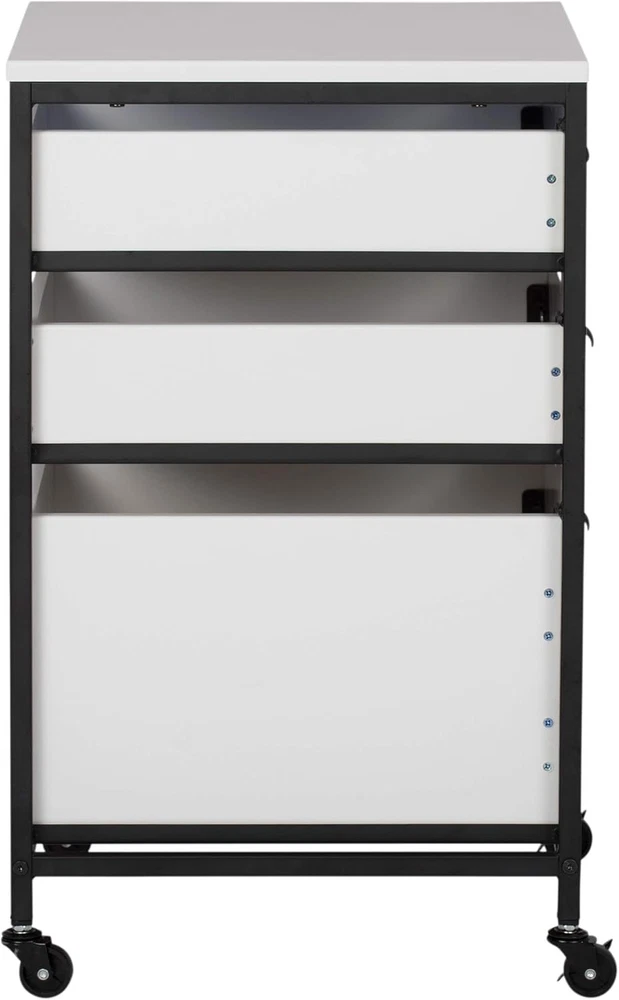 Item Weight: 29.4 pounds Specific instructions for use: Barber, Sewing, Home Organization, Cosmetology, Tattoo Artist, De Frame Material: Metal gtin13: 313026913996 Assembly Required: Yes Material MDF-90%, Metal - 9%, Plastic1%: Item Weight 29.42 Pounds Global Trade Identification Number: 00017342102231 Furniture Finish: Painted Item Height: Does not apply Item Width: Does not apply Type: Does not apply Style: 3-Drawer Country of Origin: China Warranty Description: Not applicable., 10 year limited warranty on parts only. UPC: 313026913996 Batteries required: No Shelf Type: Tiered Shelf Item Length: Does not apply Brand: Does not apply Number of pieces: 1 Number of Shelves: 3 Product Dimensions: 17"D x 17"W x 27"H Product Care Instructions: Wipe with Dry Cloth Color: Charcoal / White Item model number: 10223