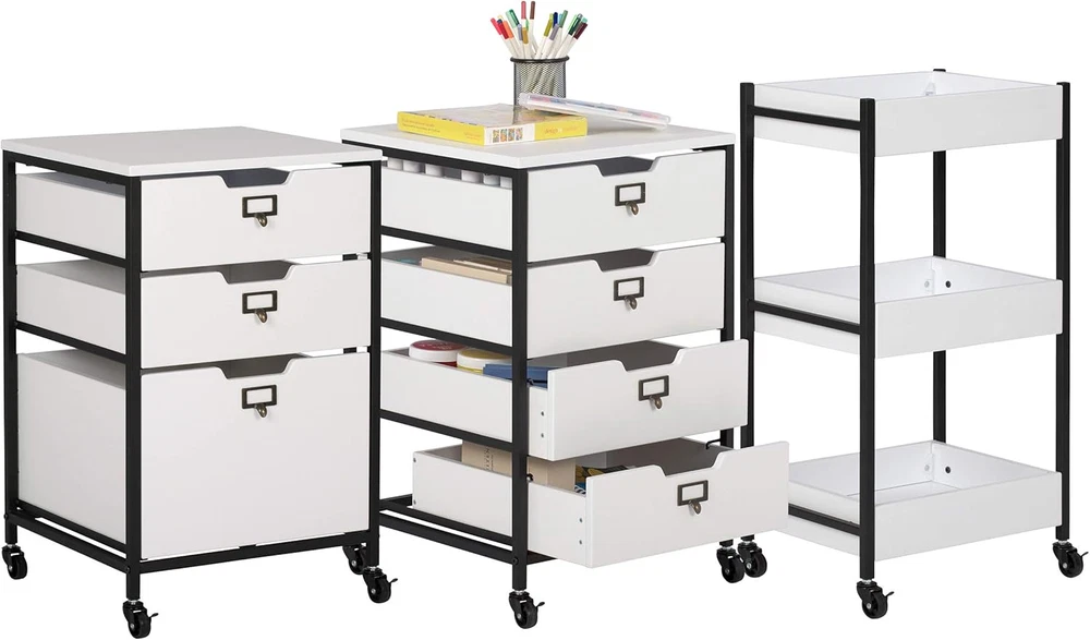 Store New Arrivals Add to Favorite View Feedback Contact Charcoal/White 27" H 3-Drawer Mobile Storage Organizer Cart for Bathroom, Kitchen, Crafts, Home Office or Laundry Rooms Description Item model number 10223 Material MDF-90%, Metal - 9%, Plastic1% Item Weight 29.42 Pounds Style 3-Drawer Assembly Required Yes Shelf Type Tiered Shelf Color Charcoal / White Product Dimensions 17"D x 17"W x 27"H Furniture Finish Painted Country of Origin China Warranty Description Not applicable., 10 year limited warranty on parts only. Item Weight 29.4 pounds Batteries required No Frame Material Metal Number of Shelves 3 Global Trade Identification Number 00017342102231 Specific instructions for use Barber, Sewing, Home Organization, Cosmetology, Tattoo Artist, Dental Office, Medical Office, Crafting Product Care Instructions Wipe with Dry Cloth Number of pieces 1 Assembled Dimensions: 17" W x 17" D x 27" H Two Pull-Out Drawers: 14" W x 15" D x 3. 25" H (inner dim) One Large Bottom Drawer: 14" W x 15" D x 8. 75" H (inner dim) Metal Framed Label Holders in a Antique Bronze Finish for Each Drawer Powder Coated Steel Frame for Durability with Four Casters for Mobility with Two Locking Our Sew Ready line of mobile storage carts offer an organized space for the many tools and accessories that can clutter a craft room. These versatile carts can be used in almost any room in the house: bathrooms, kitchen, playroom, home office or laundry room. The casters make it easy to move them across the room or from room to room. The front casters can be locked to keep it in place during projects. The 3-Drawer Mobile Organizer has 2- shallow drawers for smaller tools and 1- deep drawer for taller objects. All drawers have a combination metal pull with label holder so you can note contents inside. These carts are available in three configurations: 3-drawer (Item # 10223), 4-drawer (Item # 10224) or 3 open bins (Item # 10225). ABOUT US We offer the best prices around on high quality products. Our E-store includes media such as books, movies, music and games while offering electronics, toys, sporting apparel, clothing, tools, general home, garden items and more. SHIPPING We are always working hard to ensure your package arrives as soon as possible. Please understand that some factors like weather, high postal traffic, and the performance of shipping companies are outside of our control. We offer free shipping to the lower 48 states and ship within 2 business days of payment, usually sooner. We do not accept P.O. Boxes. Please provide a physical address. For shipping outside of the continental USA, we only use eBay's Global Shipping Program.The item is shipped to KY and then sent to the rest of the world. International customers are responsible for all duties and taxes. Continue to check out in order to calculate costs for shipping the item to your country. Messages regarding eBay's Global Shipping Program MUST be directed at eBay EXCLUSIVELY. RETURNS We offer a 30-Day Return Policy on items which you are not completely satisfied with. You have the option for a full-refund or an exchange of the item. No returns are available on items shipped outside of the USA. PAYMENT We accept PayPal. CONTACT US This page content is yet to come Please ad us to your favorite seller and visit again later Thank You CUSTOMER SATISFACTION We try our very best to make sure every customer is completely satisfied. If there's a problem, message us! We're happy to help. WE ACCEPT Copyright © 2021 AutoDS. | All Rights Reserved
