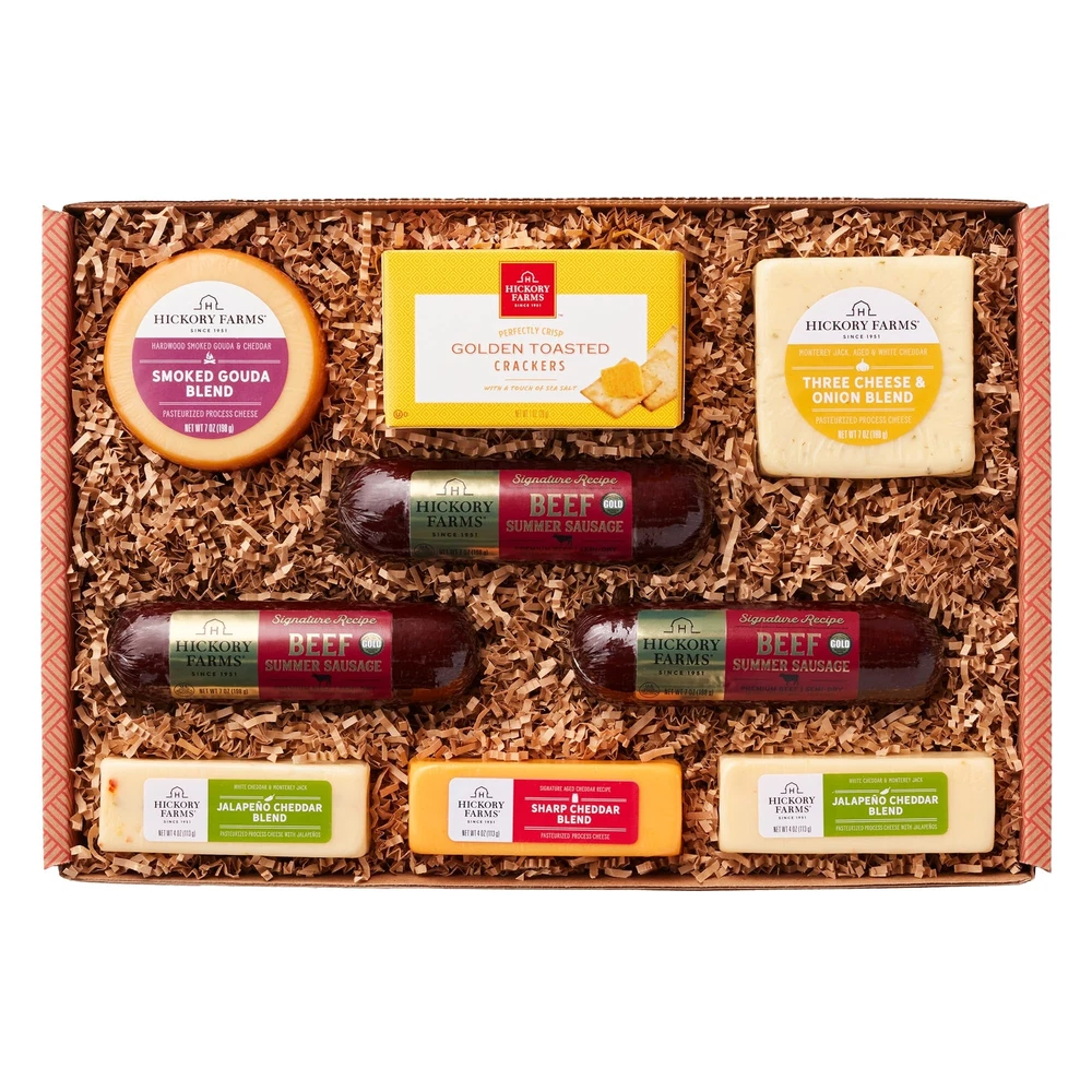 Hickory Farms Meat & Cheese Large Gift Box - Gourmet Food Gift Basket | Charcuterie Board Food - Meat and Cheese | Christmas Gift Basket | Father's Day Gift Basket | Holiday Gift Basket | Housewarming Gift | Perfect For Family, Birthday, Sympathy, Congratulations Gifts, Retirement, Thinking of You, Corporate Gifts USA FREE SHIPPING THE ULTIMATE GIFT FOR THE MEAT & CHEESE LOVER – The ultimate gift for the meat and cheese lover! Hickory Farms classic summer sausage, cheese, and mustard flavors all pair perfectly for delicious bites. This gift has everything they need to create a gourmet meat and cheese spread. MEAT & CHEESE: (3) 7 oz Signature Beef Summer Sausage, (2) 4 oz Sharp Cheddar Blend, 7 oz Three Cheese & Onion Blend, 4 oz Jalapeño Cheddar Blend, 7 oz Smoked Gouda Blend GOURMET CRACKERS: 1 oz Golden Toasted Crackers MAKES A GREAT GIFT: Perfect for the holidays, care packages, birthdays, and business or corporate gifts. Shelf-stable summer sausage and cheese, great for snacking, appetizers, parties and entertaining. The ultimate gift for the meat and cheese lover. Smoked Gouda Blend, Harvest Cheddar Blend, Jalapeño Cheddar Blend, and Creamy Swiss Blend cheeses all pair perfectly with our Signature Beef Summer Sausage stacked up on Golden Toasted Crackers for a delicious bite. This gift is perfect to send to someone to let them know you're thinking of them or would like to surprise someone when they need a pick-me-up. Shipping We offer FREE shipping on all orders! We ship within Three business days of payment, usually sooner. We use a selection of shipping services such as UPS, FedEx, USPS etc. We only ship to the lower 48 states, no APO/FPO addresses or PO Boxes allowed. Local pickups and combined shipping options are not provided at this time. Return You can return a product for up to 30 days from the date you purchased it. Any product you return must be in the same condition you received it and in the original packaging. Please keep the receipt. Payment We accept payment by any of the following methods: PayPal Please pay as soon as possible after winning an auction, as that will allow us to post your item to you sooner! Feedback Customer satisfaction is very important to us. If you have any problem with your order, please contact us and we will do our best to make you satisfied. Contact Us If you have any queries, please contact us via ebay. We usually respond within 24 hours on weekdays. Please visit our eBay store to check out other items for sale! Thank you for shopping at our store.