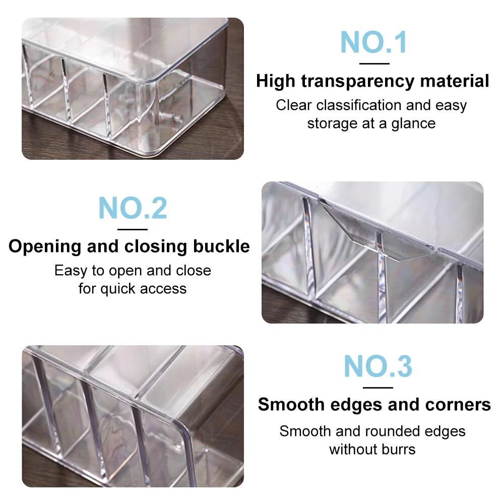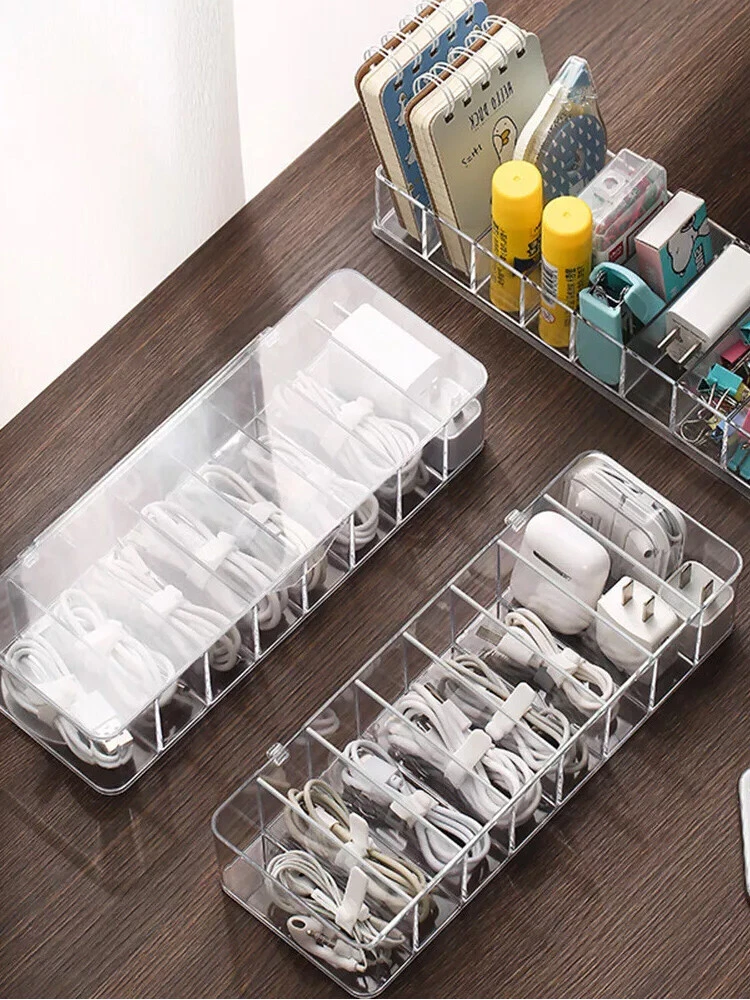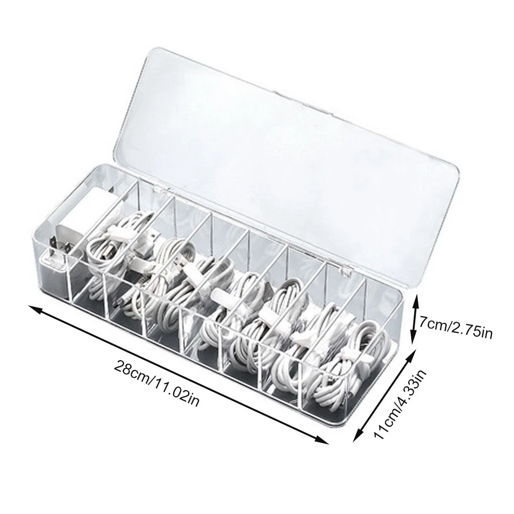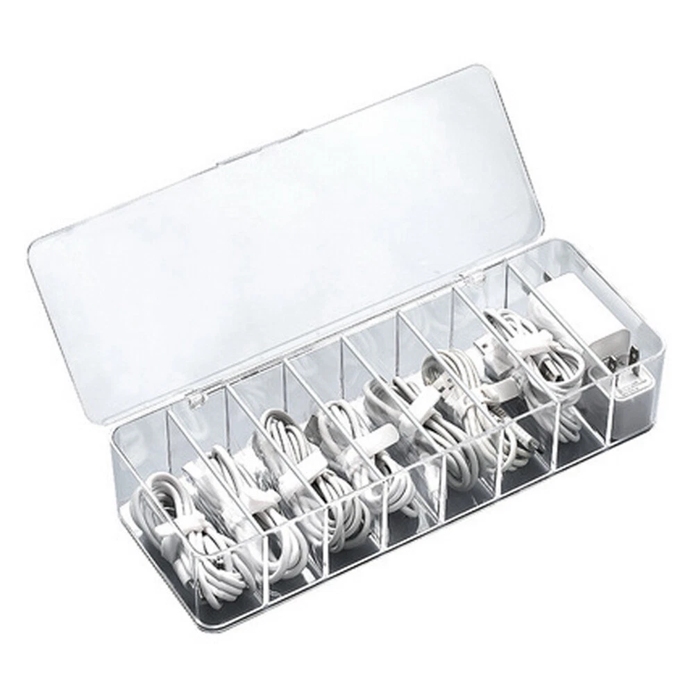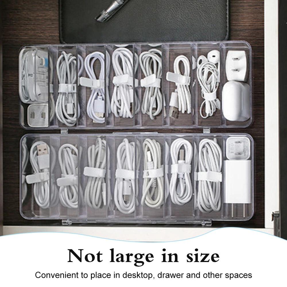 Features: 1、Large capacity partition: With 8 compartments, each compartment can accommodate 2-3 data cables, allowing for the classification and storage of various data cables and chargers, bidding farewell to clutter. 2、Compact and portable: With a small size, it is convenient to place on desktops, drawers, and other spaces without taking up too much space, making it easy to carry and move. 3、 High quality material: Made of PS material, the box body is thickened, sturdy and durable, and the high transparency material makes the internal items clear and easy to find. 4、Good detail design: The opening and closing buckle design makes it easy to open and close, making it convenient to quickly retrieve items; Smooth and rounded edges without burrs, safe to use. 5、 Paired with cable ties: Comes with 10 cable ties, measuring 6 centimeters in length and 1 centimeter in width, which can tightly wrap the data cable to prevent tangling and provide more organized storage Specifications: Size: 25 * 8 * 4.5cm Weight: 230g Number of cells: 8 texture of material: ps Package List: 1 x storage box 10 x straps On Feb 11, 2025 at 20:38:09 PST, seller added the following information: