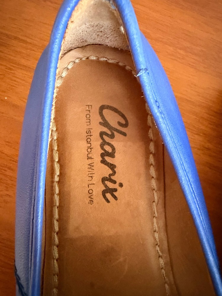 These Charis leather flats offer a blend of effortless style and everyday comfort. Crafted with soft leather, they provide a flexible and cozy fit, perfect for casual outings, travel, or relaxed days. The vibrant blue color adds a distinctive pop of personality, reflecting the unique charm of their "From Istanbul With Love" origin. Their simple, slip-on design ensures easy wearability and a versatile addition to your footwear collection. Crafted from genuine leather, offering both durability and a supple feel. Features a classic slip-on silhouette for convenient, all-day comfort. Presents a striking blue color, ideal for adding a vibrant touch to any outfit.