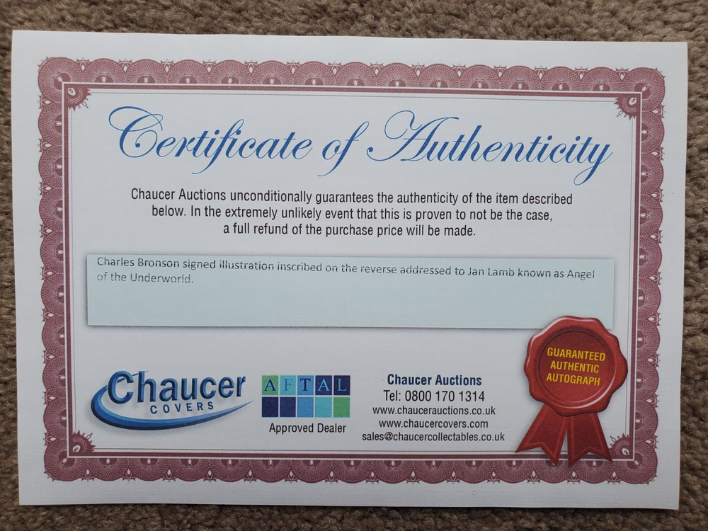 Charles Bronson 2002 'Birdman of Broadmoor' (Early artwork) Personal artwork card and note posted to Jan Lamb (The Angel of the Underworld) 2x SIgned Original Not Print Certificate of Authenticity provided by Chaucer Auctions