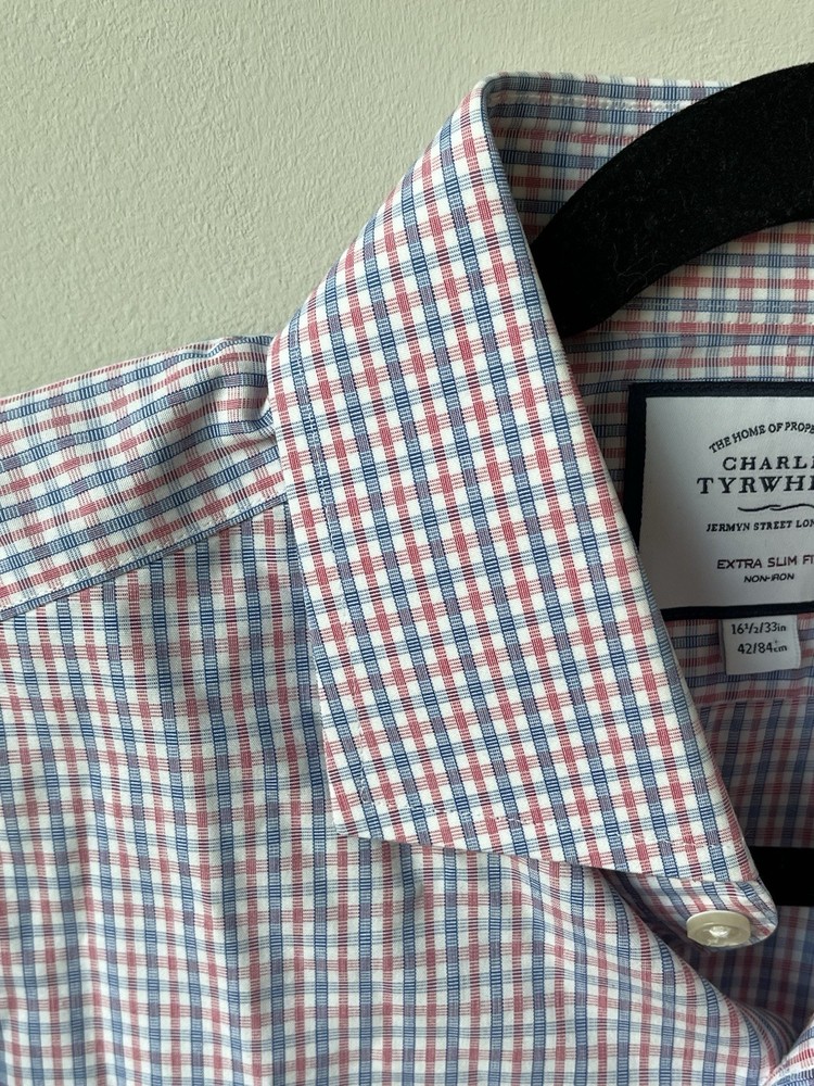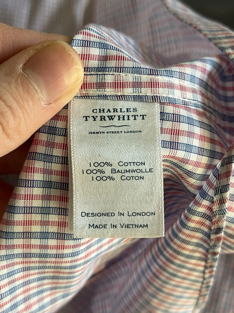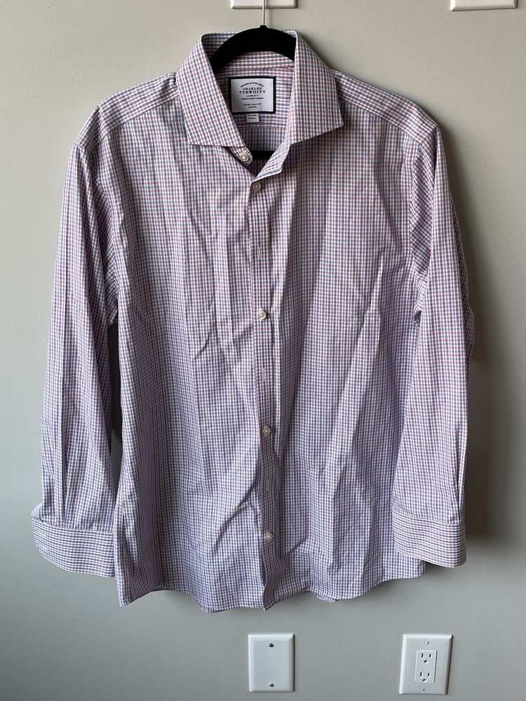 Charles Tyrwhitt Multicolor Plaid Dress Shirt Non-Iron Mens 17 35 Classic Ivy