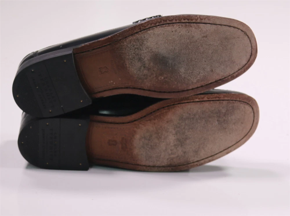 Brand : Charles Tyrwhitt Size : US: 10 Eu: 43 . Please follow my measurements Measurements: Length (outside): 12 Inches Width at Widest Point (outside): 4 Inches Height at Back: 3.75 Inches Length (insole): 11.45 Inches Material : Upper: Leather - Sole: Leather Style/Design/Model : Penny Loafers Color : Black Condition : Gently Used. No stains or tears. Inventory Code #F3622 Powered by SixBit's eCommerce Solution