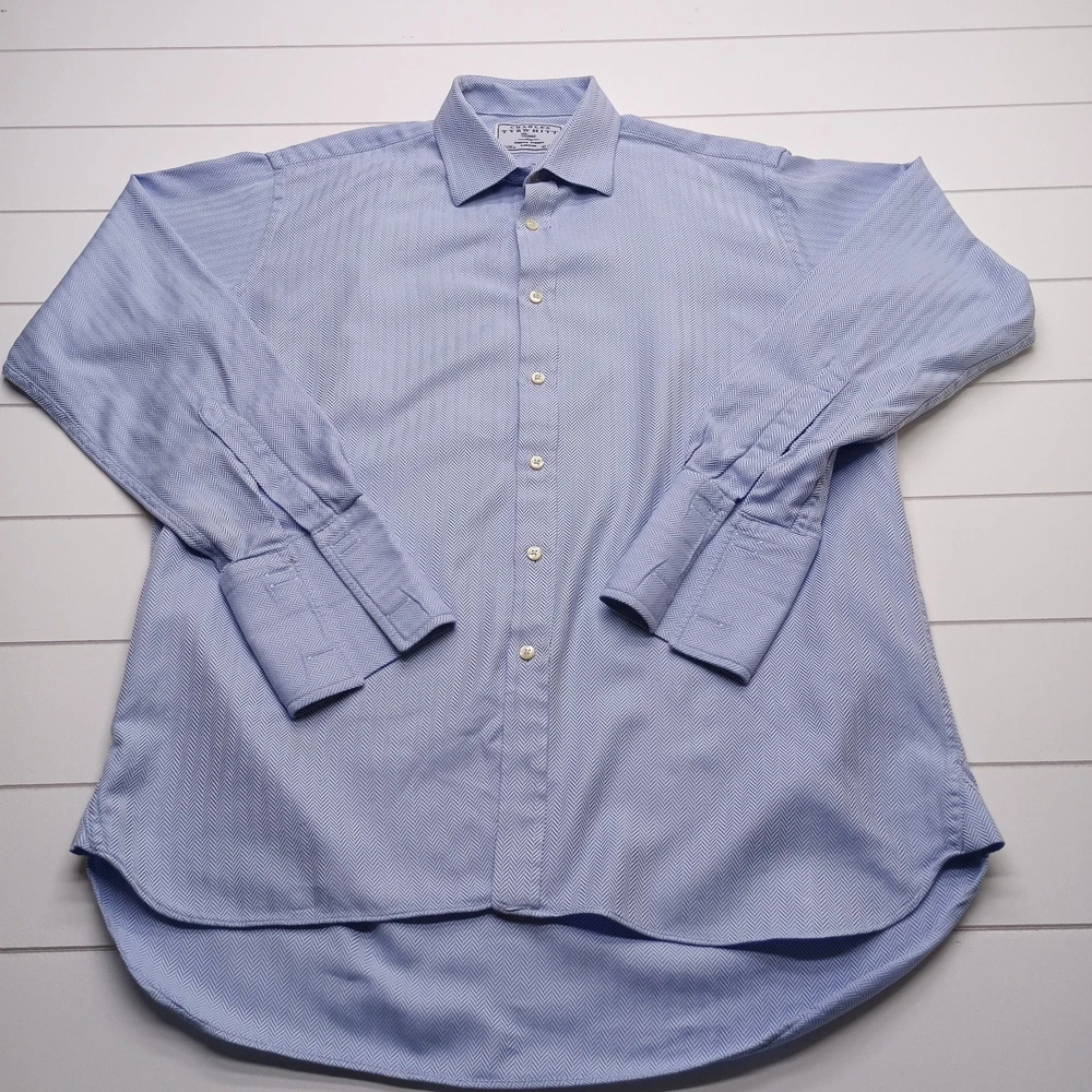 Scroll down to view item description, details, condition, and shipping information . Each pre-owned item is professionally cleaned prior to shipment and it arrives clean, fresh, and ready to wear. Classic Charles Tyrwhitt dress shirt crafted in a refined blue herringbone weave with a crisp non-iron finish, offering a polished Ivy League aesthetic ideal for professional and elevated casual wear. This Classic fit shirt features a smooth, structured drape and breathable cotton fabric that pairs effortlessly with tailored trousers, chinos, or layered under a blazer. Clean, timeless, and versatile, this piece reflects traditional Jermyn Street craftsmanship. Gently pre-owned and well maintained. Item Details Brand: Charles Tyrwhitt Style: Dress Shirt Size: 16.5 / 36 Color: Blue Material: Cotton Fit: Classic Fit Sleeve Length: Long Sleeve Pattern: Herringbone Made in: Not specified Condition: Pre-owned, excellent condition. No stains, holes, or excessive wear. Clean and ready to wear. Features Classic herringbone weave with refined texture Non-iron finish for easy care and sharp appearance Traditional spread collar suitable for business or formal wear Classic fit with comfortable, structured drape Timeless Ivy League style inspired by Jermyn Street tailoring Shipping Ships next business day from the United States with tracking. Carefully inspected, photographed, and stored in a smoke-free environment. Approximate Measurements (Laid Flat) Pit to Pit (Chest Width): inches Sleeve Length (Shoulder to end of Sleeve): 27 inches Overall Length (Top of Shoulder to Bottom Hem): 32 inches Return Policy Changed your mind? No problem. We accept returns within 30 days for any reason, including sizing or satisfaction. Items must be returned in the same condition as originally sent. Cancellation Policy Orders may be canceled or returned within 30 days of delivery, provided the item is returned in the same condition it was shipped. Shipping Policy Orders are processed within 1 business day of receiving payment Please confirm your shipping address at checkout - addresses cannot be changed once an order is placed All merchandise ships from the United States Every shipment includes USPS tracking, provided once the order ships Shipping is included in the total price We ship exclusively via USPS for reliable, consistent delivery Domestic & International Shipping We ship to all U.S. states and offer worldwide international shipping. Your Feedback Matters Positive feedback is greatly appreciated and helps support our small business. If you have a good experience, we would be grateful for your review. If there is any issue with your order, please contact us through eBay messaging before leaving feedback. We are easy to work with and committed to resolving concerns quickly and fairly. Condition Notice What you see is what you get. Please review all photos carefully for a clear and accurate view of the item's condition.