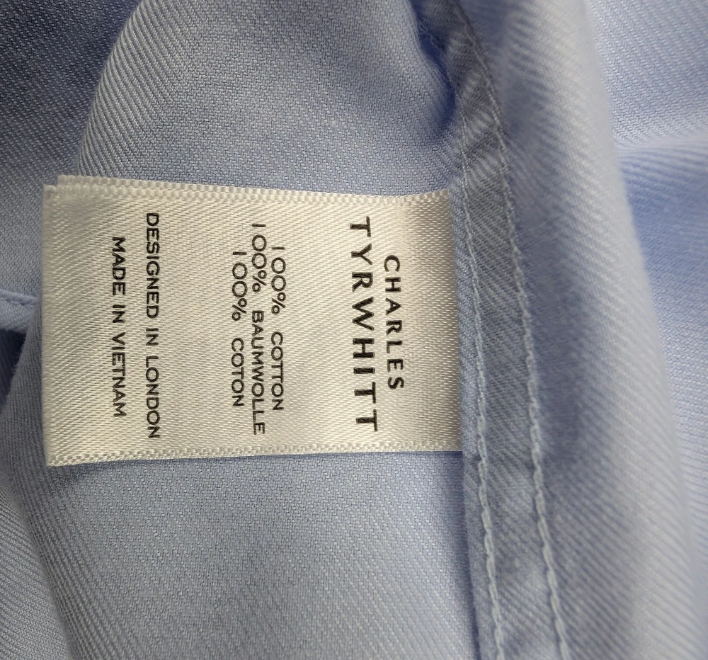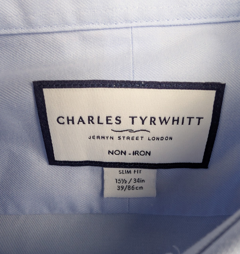 Brand: Charles Tyrwhitt Size Type: Regular Size: 15.5 / 34 Department: Men Type: Dress Shirt Color: White Fit: Extra Slim Sleeve Length: Long Sleeve Neck Size: 15.5 in Material: Cotton Blend Fabric Type: Woven Closure: Button Collar Style: Point Collar Features: Lightweight, Breathable Country/Region of Manufacture: Vietnam Condition: Pre-owned Pre-owned in good condition. Please see photos for details and overall condition. Some light marks on the shoulder as shown