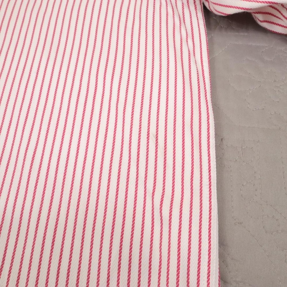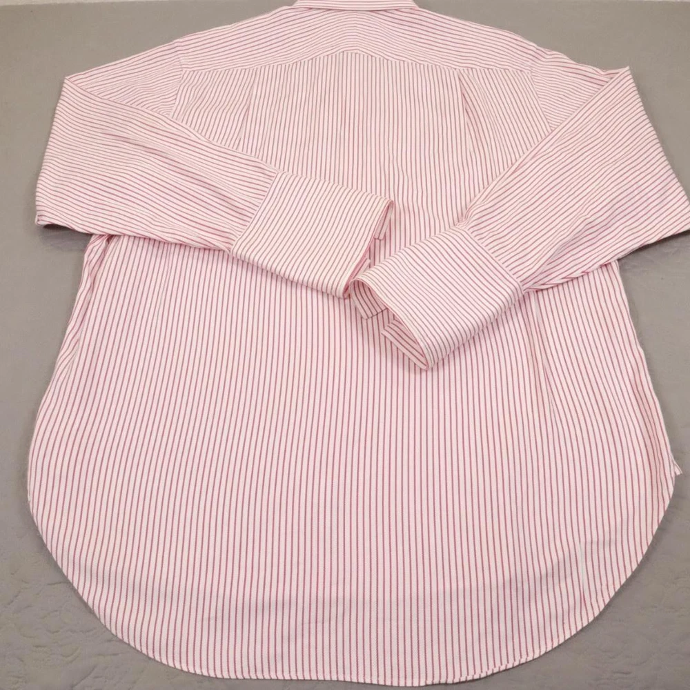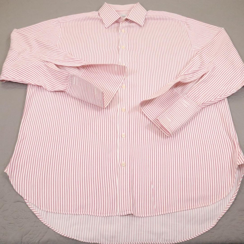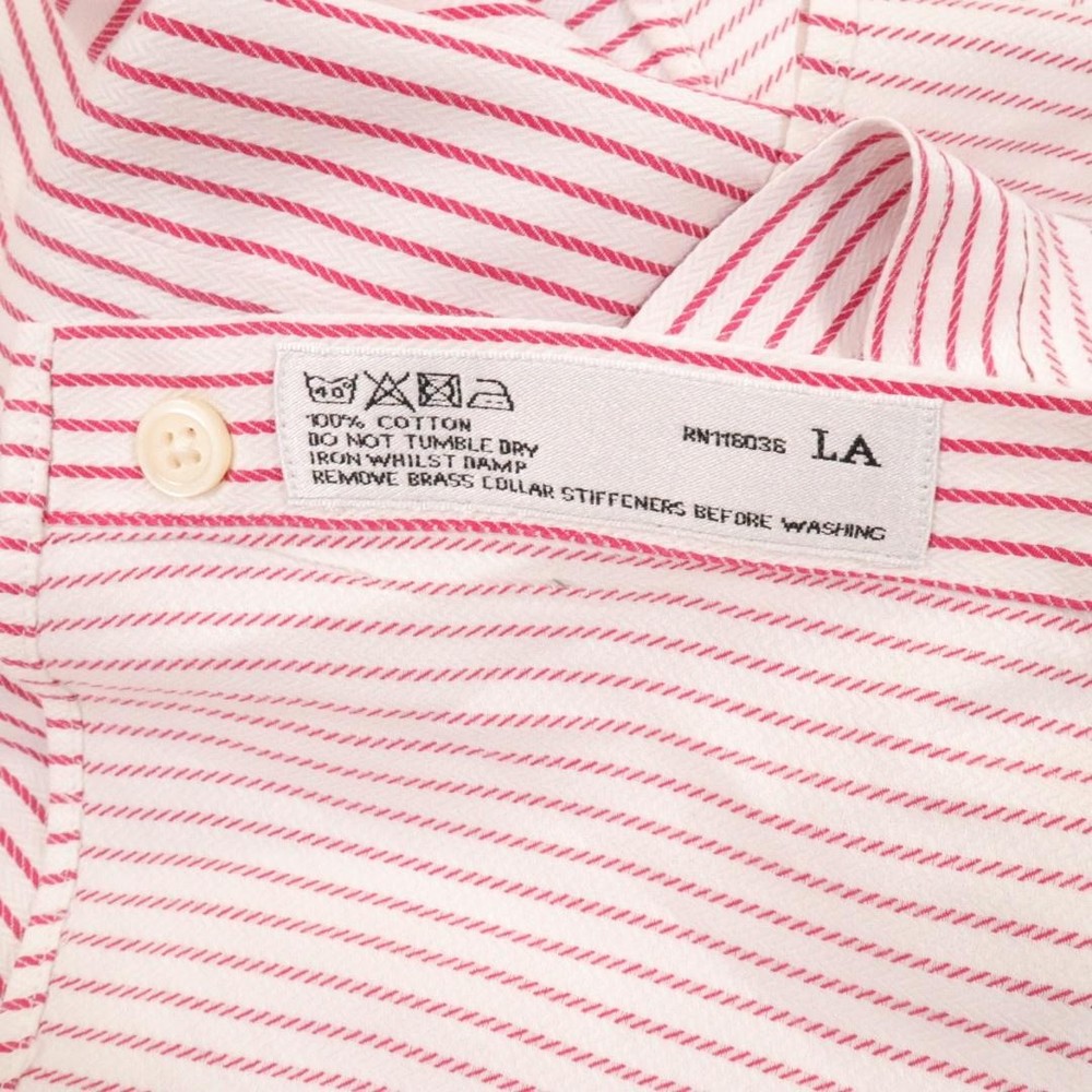 Brand: Charles Tyrwhitt. Style: Mens classic fit long sleeve striped dress shirt. Color: White with pink vertical stripe pattern. Size on tag: Mens 16.5 34in (16½/34, 42/86 cm). Material: 100% cotton twill.