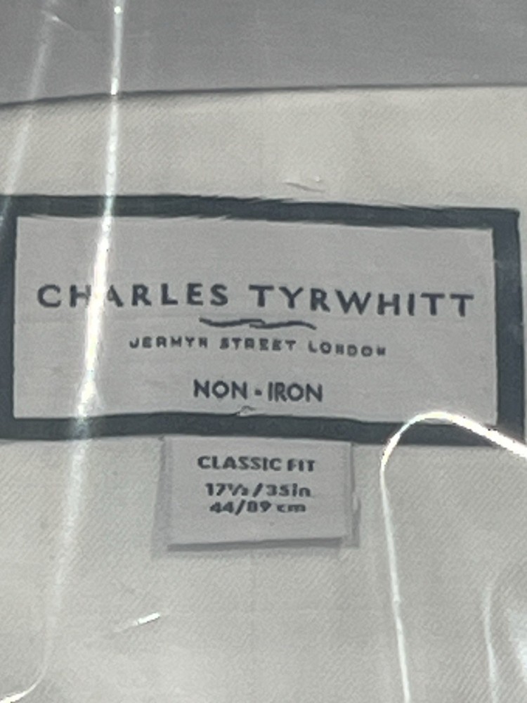 The Charles Tyrwhitt Dress Shirt in white is a classic, non-iron shirt perfect for business occasions. Made of 100% cotton with a slim fit, this shirt features a collared neckline, long sleeves, and a button closure. The spread collar and barrel cuff add a touch of sophistication to this timeless piece. Easy to care for with machine washable instructions, this shirt is a versatile and stylish addition to any man's wardrobe. BOUGHT THESE BUT LOST WEIGHT SO WONT FIT