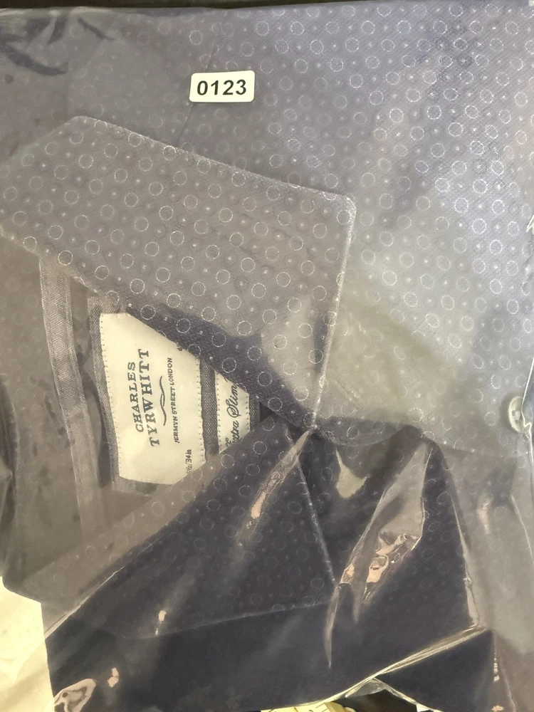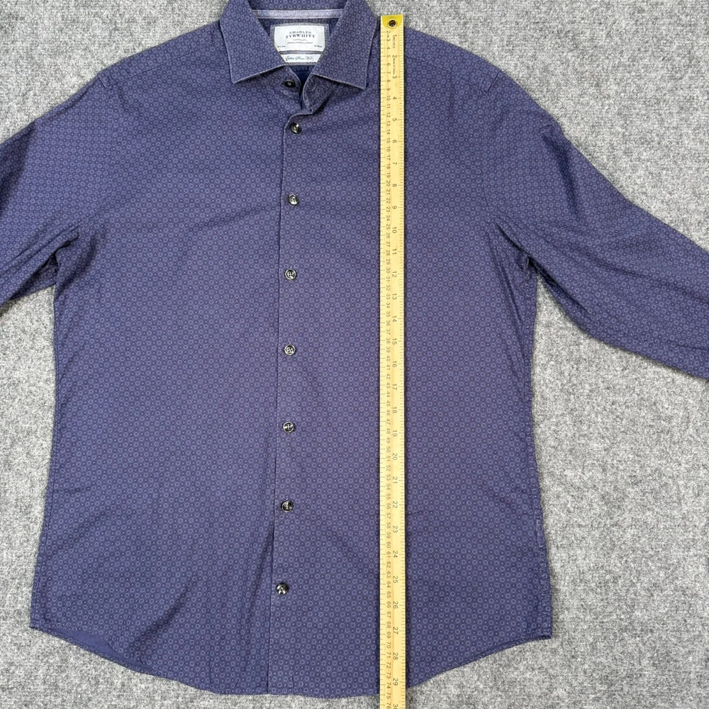 π Charles Tyrwhitt Jermyn Street London β¨ Product Details Upgrade your professional wardrobe with this sharp Charles Tyrwhitt dress shirt. Featuring a modern extra slim fit and a sophisticated navy geometric circle pattern, it's perfect for the office or formal events. Brand: Charles Tyrwhitt Size: 16.5" Neck / 34" Sleeve (42/86cm) Fit: Extra Slim Fit Material: 100% Cotton Color: Navy Blue with White/Light Blue Geometric Pattern Design: Spread collar and button cuffs π Measurements β’ Chest (Pit to Pit): 21.5" β’ Length (Shoulder to Hem): 29.5" β’ Sleeve (Top of shoulder to cuff): 24.5" π Condition Report Excellent Pre-Owned Condition! π No stains, holes, or significant signs of wear noticed. Fabric is crisp and colors are vibrant. All original buttons are securely attached. π¦ Shipping Information π¨ Fast shipping! All items are handled with care and stored in a smoke-free environment. Check my feedback and buy with confidence!