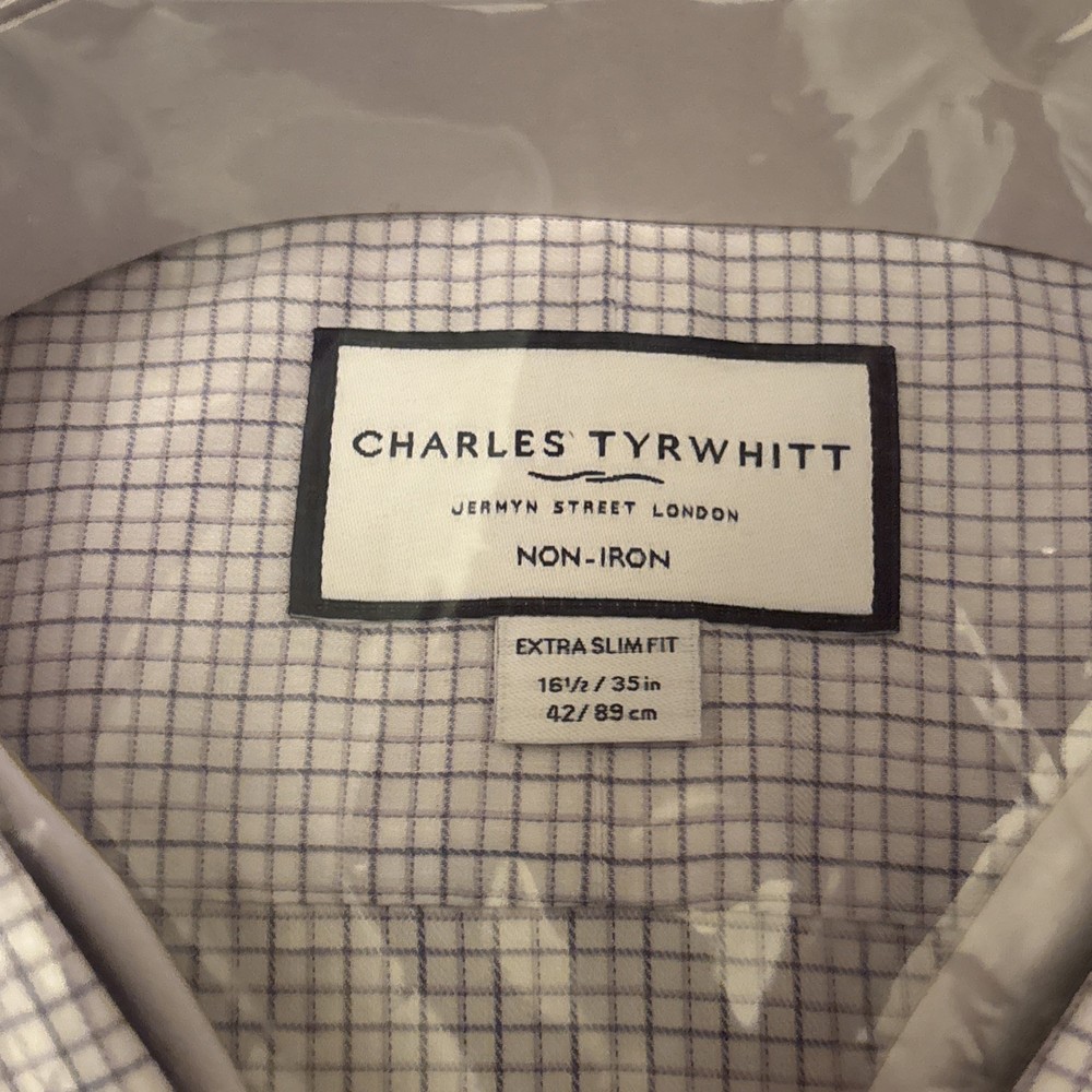 The Charles Tyrwhitt Lilac Two Tone Performance Check Extra Slim Fit dress shirt in size 16.5 offers a stylish and sophisticated look for men in the office or for business casual occasions. Made from 100% cotton twill fabric, this shirt features a ditsy print pattern, collared neckline, button closure, and a spread collar style. With a regular size type and extra-slim fit, this shirt is machine washable for easy care and is perfect for all seasons. The lilac two-tone color and classic design make it a versatile and timeless addition to any wardrobe.