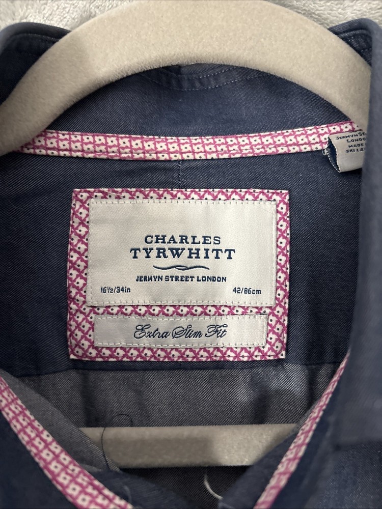 Charles Tyrwhitt Men's Extra Slim Fit Dress Shirt Blue, 16.5/34