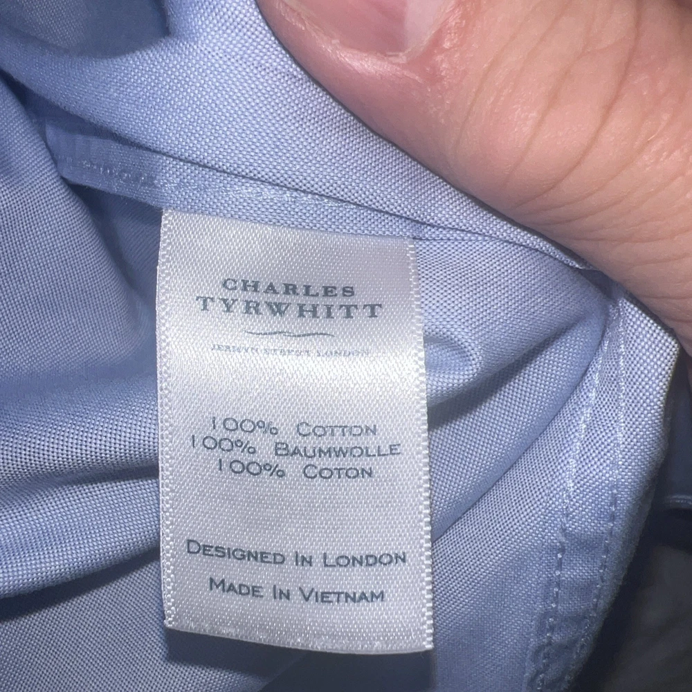 The Charles Tyrwhitt Men's Non-Iron Classic Fit Shirt in Blue is a high-quality dress shirt made from cotton. This shirt features a classic fit with long sleeves and a 18-inch neck size. The non-iron feature adds convenience and versatility to the shirt, making it a practical choice for both formal and casual occasions. Designed for regular fit and size 18/37, this shirt is a stylish and reliable staple for any man's wardrobe.