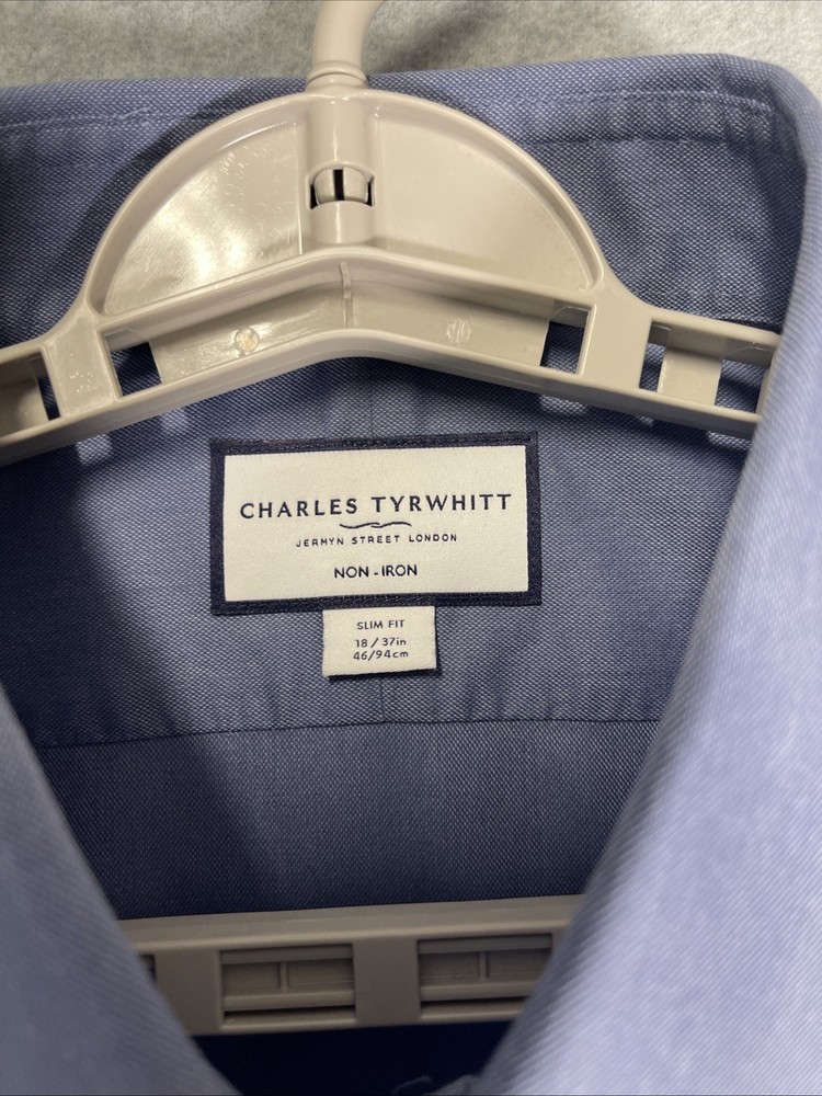 B34-0003: The Charles Tyrwhitt Men’s Non-Iron Dress Shirt in slim fit is a classic and stylish choice for formal occasions. Made from high-quality twill fabric in a solid blue color, this shirt features a spread collar and button closure. With a chest size of 37 inches and a neck size of 18 inches, this shirt is designed for a sleek and slimming look. Perfect for weddings, parties, business meetings, or any formal event, this dress shirt exudes sophistication and timeless style.