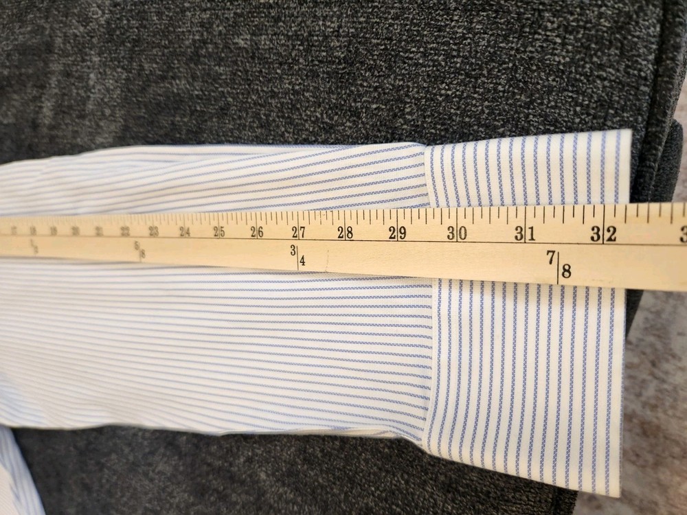 Charles Tyrwhitt Slim Fit Non Iron White With Blue Stripe 17 1/2 36". Condition is Pre-owned - Good. Shipped with USPS Ground Advantage.