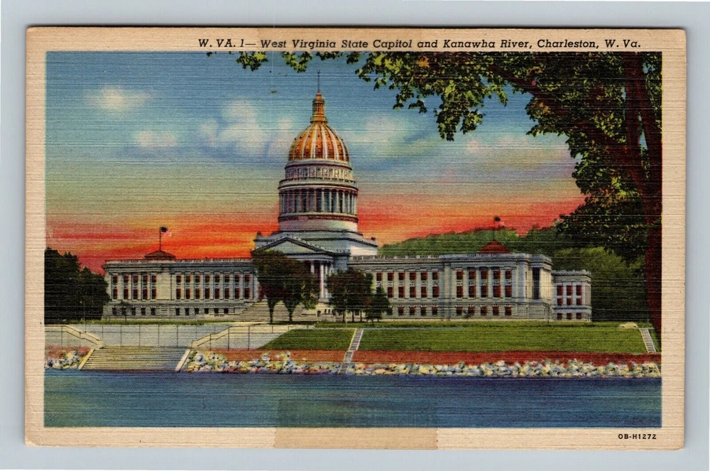 Charleston WV State Capitol Building Kanawha River Linen West Virginia Postcard