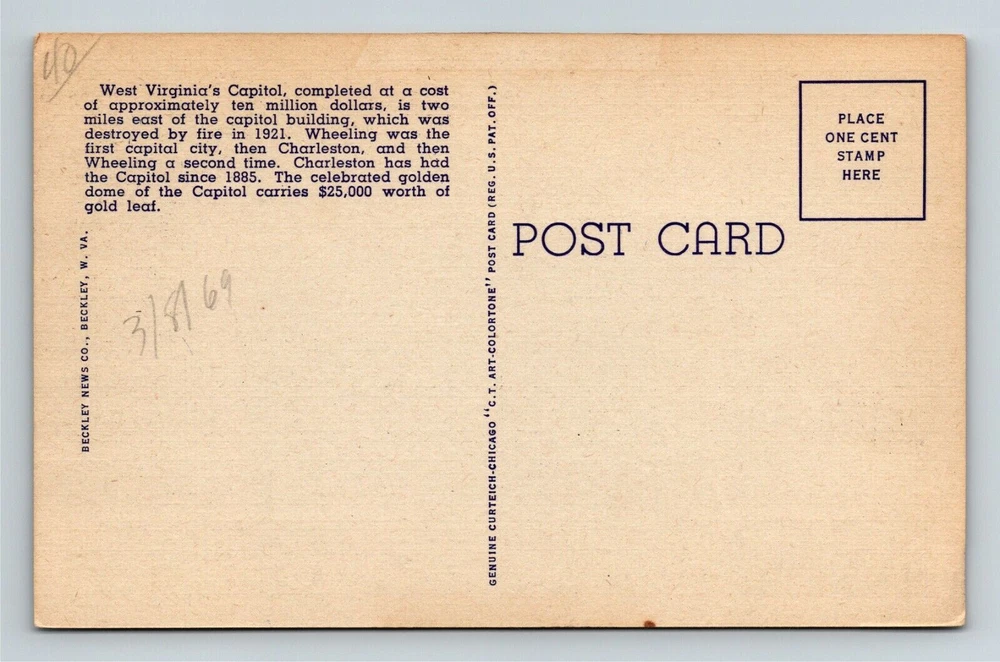 State: West Virginia Unit of Sale: Single Unit Subject: See Detailed Scan Era: See Detailed Scan Type: Printed (Lithograph) Country: See Detailed Scan Theme: Cities & Towns Region: See Detailed Scan Postage Condition: Unposted City: See Detailed Scan Circulated: Yes Original/Licensed Reprint: Original Country/Region of Manufacture: Unknown City/Region: Charleston