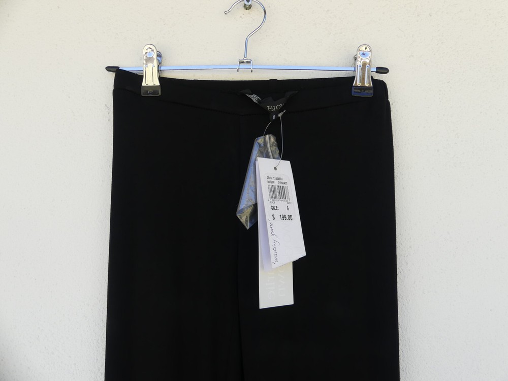 These gorgeous PANTS are a LEGGINGS style. They’re black, in a soft, stretchy fabric and have an elasticated waist. They have dark grey studs on the end of each leg. There are spare studs in a bag on the label, should you ever need them. They are from CHARLIE BROWN and are a size 6, but please check the measurements below, to ensure a good fit. The approximate measurements are: Waist: 54m Length: 97cm Front Rise: 18cm For any other measurements, please use the ‘Contact Seller’ button. They are Brand New, With Tags (rrp $199). Lots more information about these fabulous pants can also be found in Item Specifics. F007 Please take a look at the tons of other gorgeous items I have available in your size! I love to combine postage and save you money! So if you are purchasing more than one item from me, please wait for me to send you a combined invoice, or press the 'Request a Total' button in your Cart before paying. I rate my items in the following way: BNWT / BNWOT: Brand New, With Tags or Brand New, Without Tags (some part of the tag will still be attached). New items that have never been worn. EXCELLENT: has been worn, but shows very few actual signs of wear. GOOD: has been worn and is showing light signs of wear. FAIR: has been worn and is showing more signs of wash/wear - or has a small fault, which will be clearly described in the listing I am only human and can make mistakes in my listings and descriptions - so if for any reason you are unhappy with your purchase, please contact me using the 'Contact Seller' button first, so we can quickly resolve the issue. This item comes from a SMOKE FREE HOME but the odd puppy hair may drift in due to the fact she is my darling shadow throughout the day.