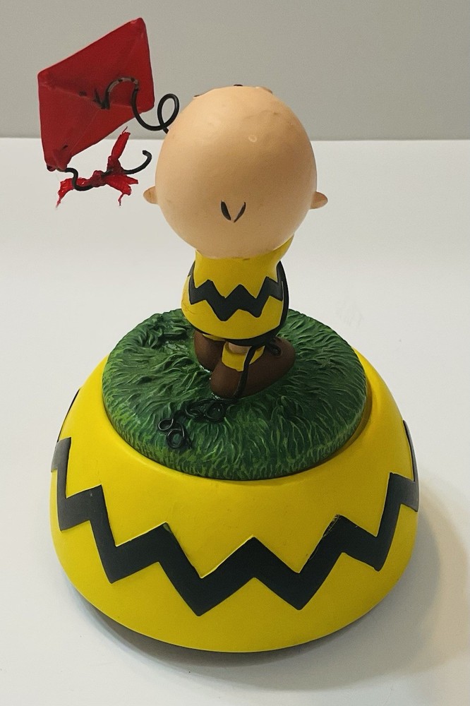 The Peanuts - Charlie Brown Flying Kite Westland Giftware Musical Figurine is an original vintage collectible featuring the beloved character Charlie Brown from the Peanuts franchise. This animated-themed figurine plays a musical tune and is perfect for all occasions. Made by Westland Giftware, this unique piece is a must-have for any Peanuts fan or collector of nostalgic items.