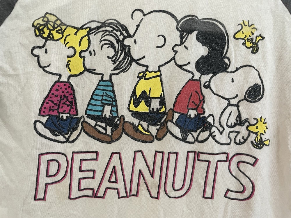 Peanuts Kids Girls Charlie Brown Snoopy Glitter 3/4 Raglan Sleeve Shirt White XL. Condition is pre-owned. Smoke free, pet free home. Shipped via USPS Ground Advantage. In fair condition. There are stains on the front and back and some of the glitter is worn off. Free of rips.