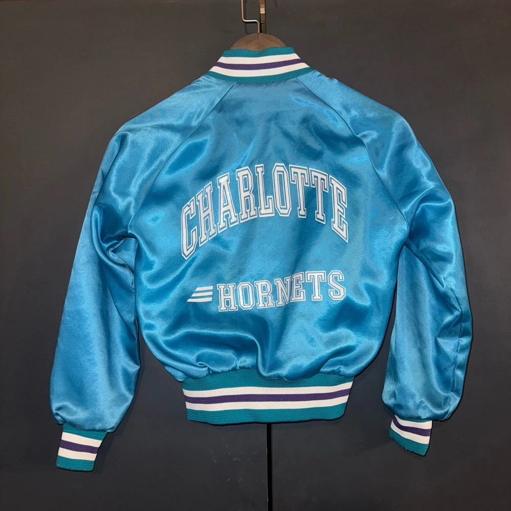 Charlotte Hornets Chalk line Satin Jacket Boys Youth 10-12 Large Spellout 80s 90s Beautiful Rare Jacket Used Condition Some Wear Shown on Jacket Hard to Find Kids Jacket Size 10-12 Measurements in photos #charlottehornets #hornets #nba