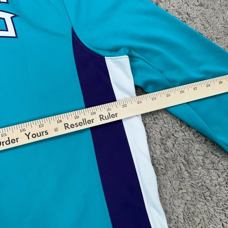 Charlotte Hornets Jacket Mens Large Blue Purple Track Warm Up Zip Performance Condition: - Tiny mark on back. - Overall in good used condition. - No rips or holes. - Nice double sided logo. Size: - Mens large . Measurements: - Previous washings may change the sizing written on the tag. - Please refer to the photos above for all measurements. - Please compare our measurements to that of one of your favorite garments (from the back for tops). - Please note, item measurements are approximate . All items are bagged and sealed after being photographed, then stored in a smoke free environment to ensure the item is exactly the same as when photographed. I carefully package and ship daily. Feel free to contact me with any questions. All items have been washed per eBay standards & policies.