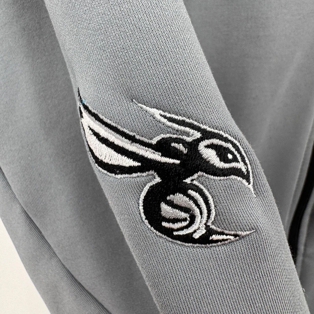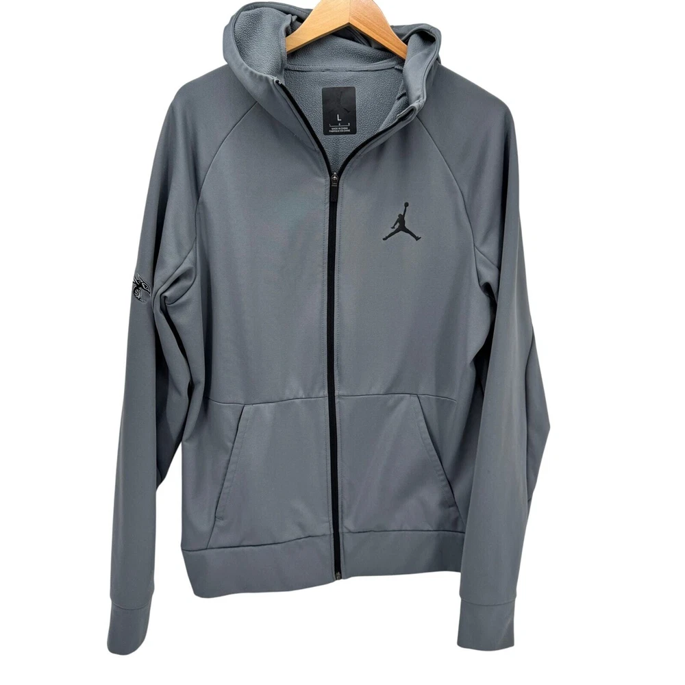 Charlotte Hornets Jacket Mens Large Gray Full Zip Hooded Air Jordan Jumpman NBA + Thumbholes Very good condition, MARKS ON BACK HEM, see all pictures for views. •Pit to pit: 22" •Shoulder to hem: 29" Ships out same day or next open postal day. Thank you for your purchase, we appreciate you!