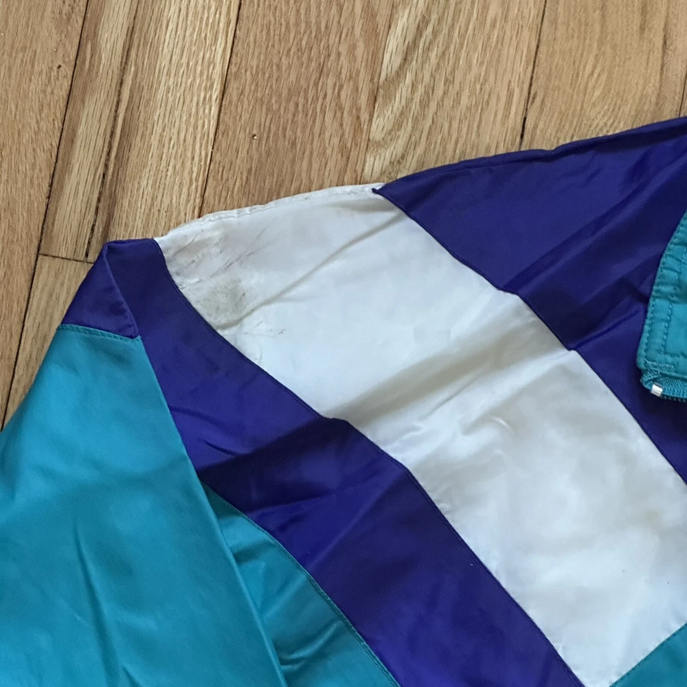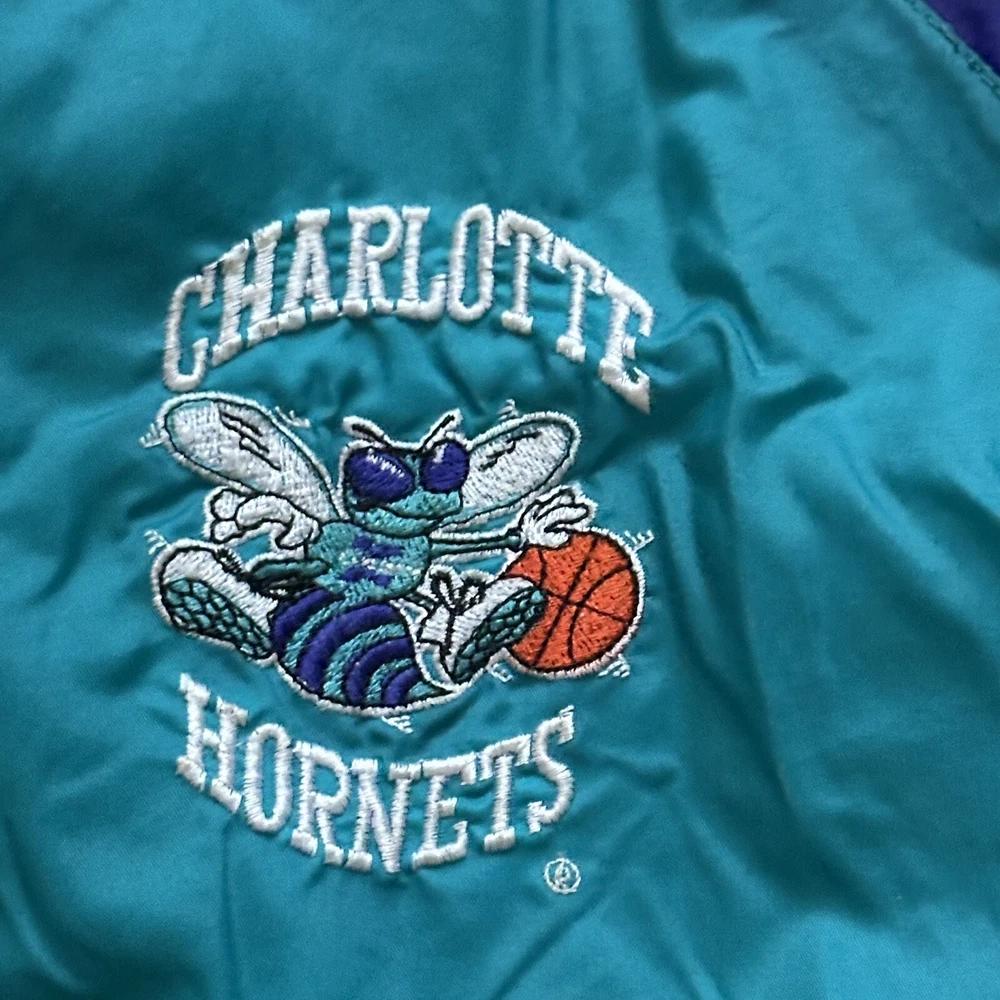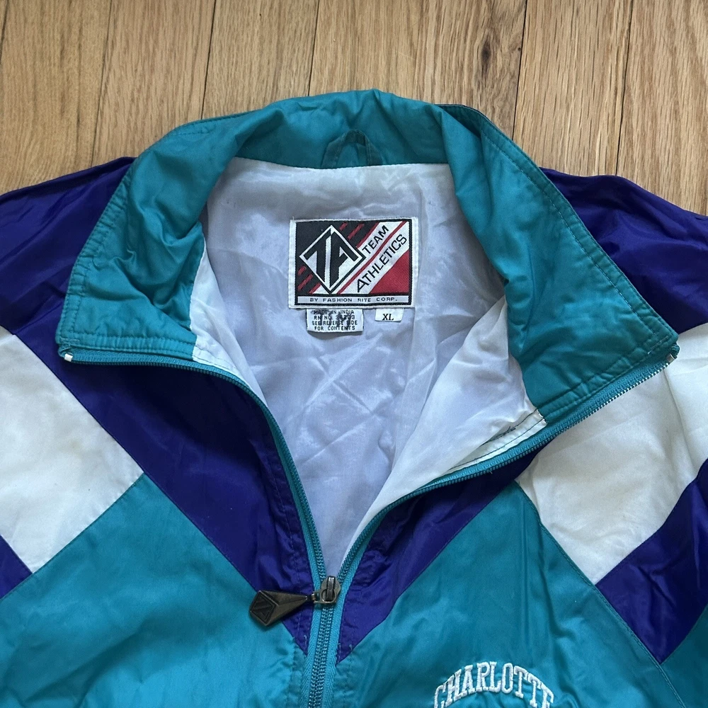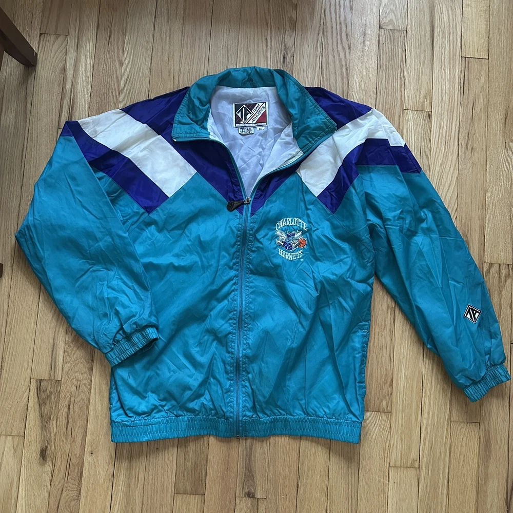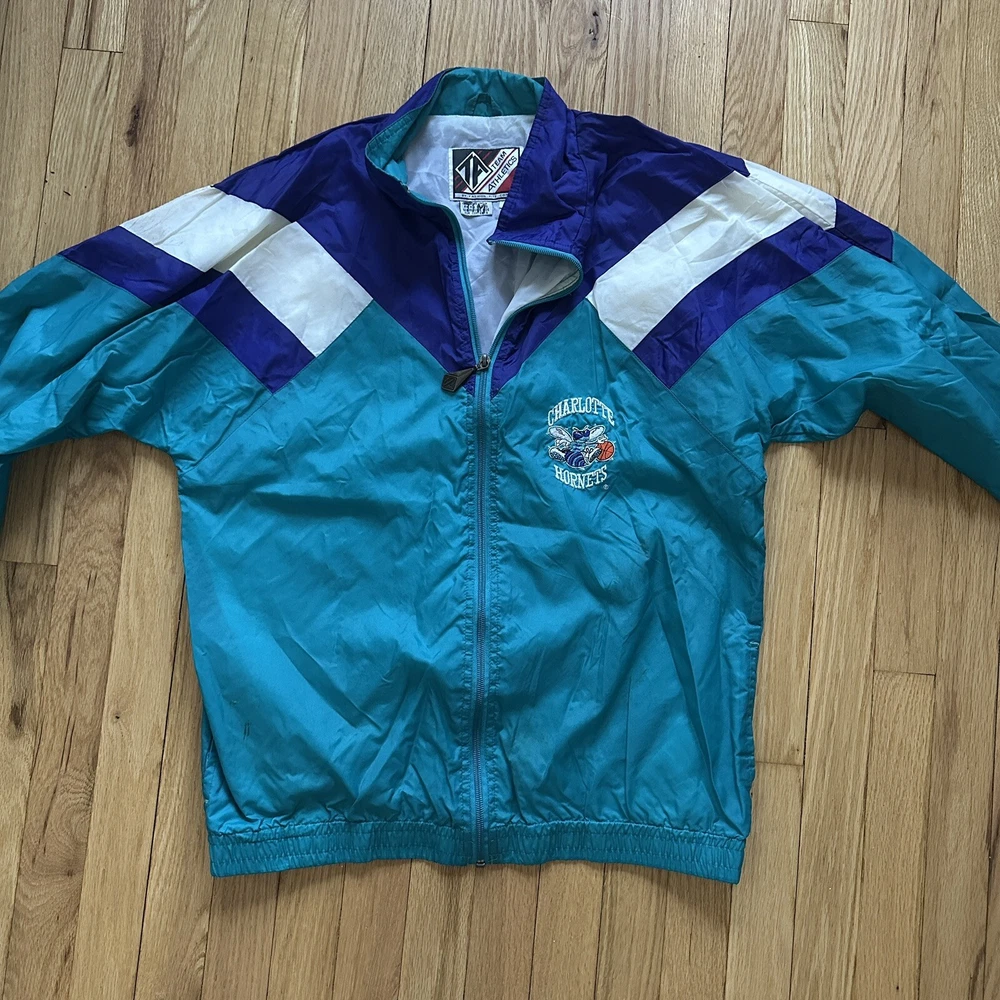 Vintage 90s Charolette Hornets Team Athletics windbreaker. Size XL, fits a bit small though so it would be better for a large or medium. A few minor stains on front and shoulder.