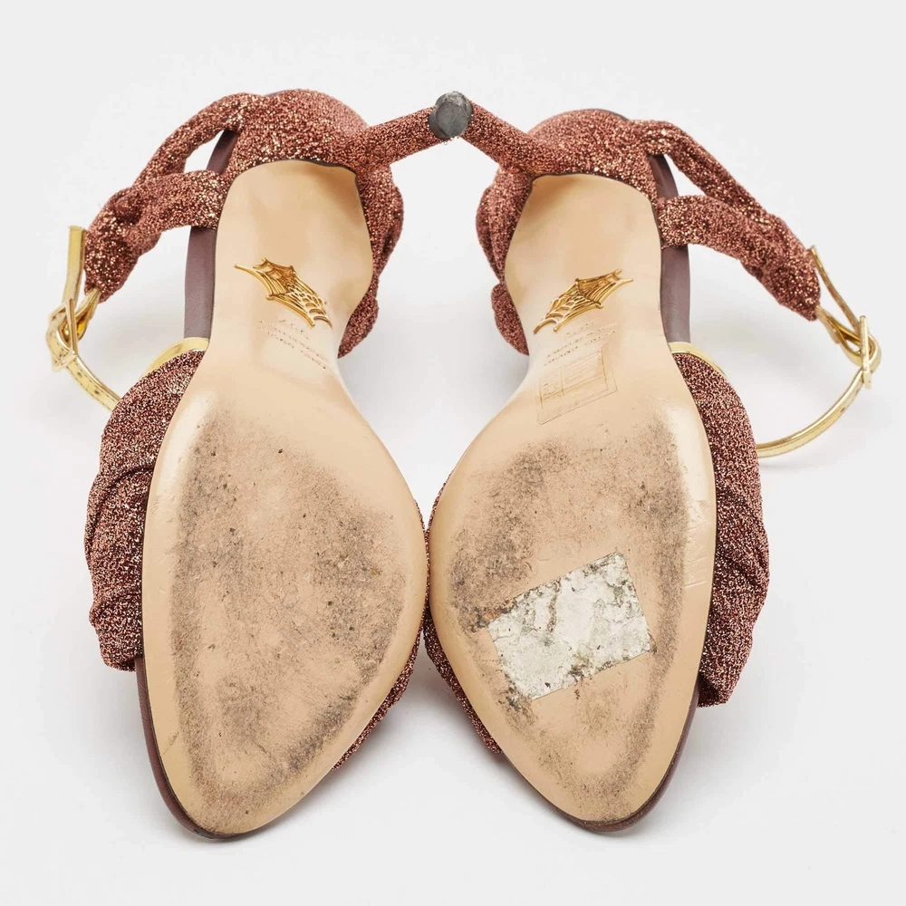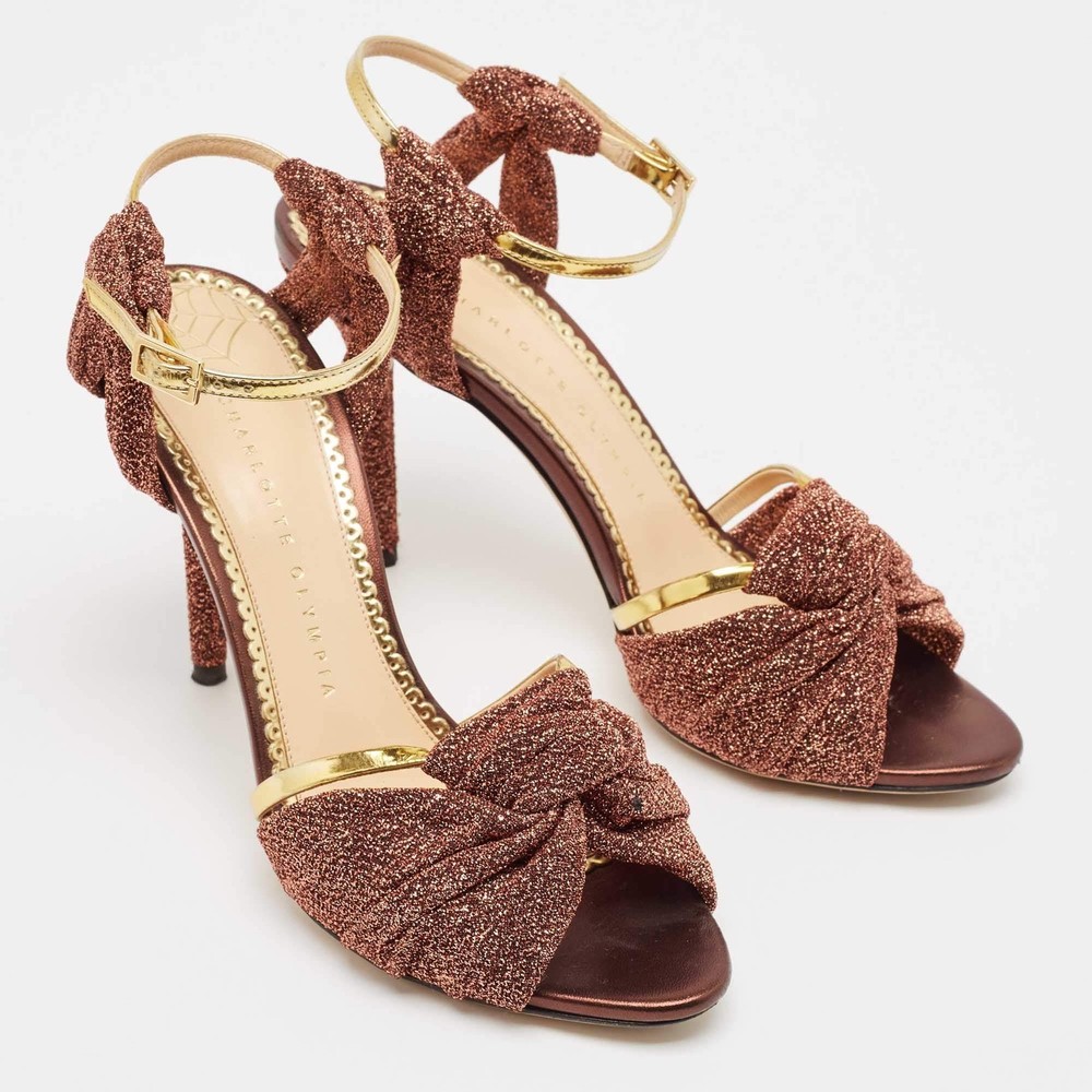 Our eBay Store About Us Contact Us Add to Favorite Sellers Charlotte Olympia Metallic Leather and Lurex Fabric Ankle Strap Sandals Size 385 These Charlotte Olympia sandals feature a stunning blend of metallic leather and shimmering lurex fabric, creating a glamorous, eye-catching effect. The ankle strap ensures a secure fit, while the elegant design exudes sophistication. Product Details Brand Charlotte Olympia Color Metallic Includes Original Dustbag Outsole Length 23 cm Outsole Width 8 cm Size 38.5 Certified by The Luxury Closet This item has gone through a detailed authentication process overseen by our experts. We offer a lifetime guarantee of authenticity on all our items. How We Check The in-house team of experts at The Luxury Closet is highly trained to verify the authenticity and the condition of the luxury products. They ensure that only 100% authentic items are put on sale.The evaluation process is unique with its own mix of assessment criteria and differs according to the category. Each item is evaluated based on the following combination of hallmarks, hardware, stitching, symmetry, material, craftsmanship, stamping, codes, hologram stickers, and packaging. Our authenticators also check if the items have been modified or amended (e.g., aftermarket diamonds, replaced batteries, repaired bags, etc.) International Buyers Import duties, taxes and charges are not included in the item price. These charges are the buyers responsibility. Please check with your country’s customs office to determine what these additional cost will be prior to buying.