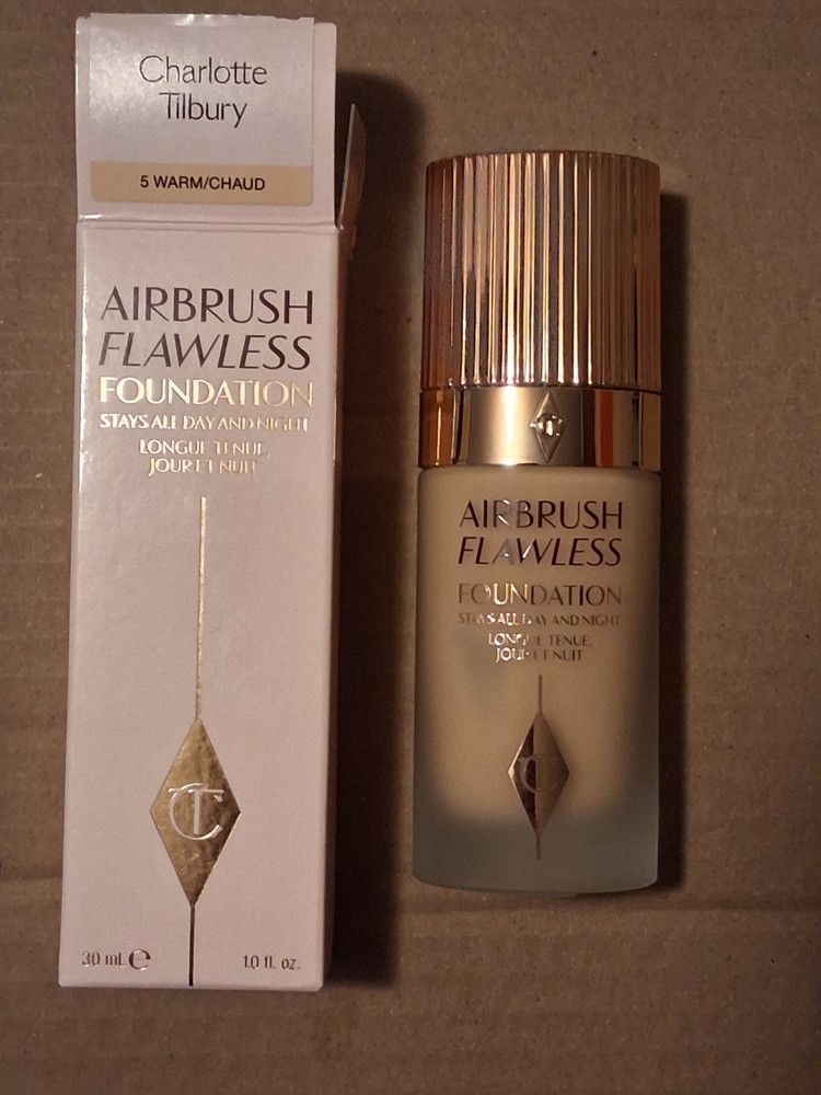 The Charlotte Tilbury Airbrush Flawless Foundation in shade 5 Warm/Chaud is a versatile liquid foundation designed for all skin types. With full coverage and a matte formulation, it provides long-lasting wear. This unscented foundation by Charlotte Tilbury is perfect for achieving a flawless and natural-looking complexion, making it a popular choice among women looking for a high-quality makeup product. Feel free to contact me with any questions.