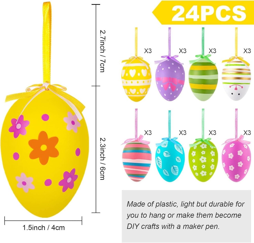 Charming 24 Pcs Multicolor Hanging Eggs - Perfect for Easter Decorations ‹ › ‹ › ‹ › ‹ › ‹ › ‹ › ‹ › ‹ › ‹ › ‹ › ‹ › Charming 24 Pcs Multicolor Hanging Eggs Perfect for Easter Decorations Features: Includes 24 pcs of random plastic decorative hanging egg ornaments. Each egg measures approximately 2.3 inches tall, with a maximum diameter of 1.6 inches. Constructed from durable yet lightweight plastic, perfect for both hanging and DIY crafting. Vibrant colors and realistic appearances add charm and elegance to any setting. Each ornament comes with a ribbon loop for easy hanging. Random styles and patterns that enhance the festive atmosphere of your Easter celebrations. Benefits: Create a festive atmosphere with vivid colors and charming designs. Flexible decoration options for indoor trees, baby beds, windows, doors, and more. Easy to work with for DIY crafts, such as personalizing with a maker pen. Perfect for sprucing up kitchens, dining tables, showcases in shops, or office spaces. 24 pieces ensure sufficient decorations for any size gathering. Why Choose Our Multicolor Hanging Eggs? Elevate your Easter celebrations with our charming set of Multicolor Hanging Eggs. Whether you are adorning your home or creating delightful crafts, these exquisite ornaments bring a vibrant flair and festive atmosphere to any space. Designed with care and crafted from durable material, our hanging eggs are not only beautiful but also versatile, allowing you to explore your creativity in decorating. Don’t wait for inspiration to strike; bring home this essential Easter decoration and spark joy and festivity in your surroundings! Order your 24 Pcs Multicolor Hanging Eggs now and make every celebration memorable! Shipping Free & Fast Shipping - We offer free shipping to most of the USA with a normal delivery time of 3-7 days. However, due to the current situation, additional delivery time (up to 3 weeks) may be required for some items. Alternative Carriers - We may use alternative carriers (e.g. USPS, FedEx, UPS, etc.) to ensure your package arrives safely and on time. Due to the use of multiple carriers, we are unable to provide a tracking number automatically. Handling Time - Orders are processed and shipped within 1-2 business days of receiving cleared payment. Shipping Restrictions - Shipping to Alaska, Hawaii, Puerto Rico, Guam, and other US territories may incur shipping charges or delivery restrictions. Please contact us before ordering, or your order can be refunded/cancelled. State Restrictions - There may be restrictions based on your state of purchase. For example, certain items may not be shipped to California due to state regulations. Contact for Tracking Updates - If you require tracking updates or have any concerns about the delivery of your order, please feel free to contact us, and we will be happy to assist you. Return 30-Day Hassle-Free Returns - We want you to be completely satisfied with your purchase. If you are not, you can return the item within 30 days of receiving it for a full refund or exchange. Easy Return Process - To start a return, simply contact us and we will provide you with a prepaid return shipping label and detailed instructions. Restocking Fee - There are no restocking fees for returns. However, the buyer is responsible for return shipping costs if the return is not due to a seller's error. Refund Processing Time - Refunds will be processed within 5 business days of receiving the returned item in its condition. Payment We accept all major credit cards, PayPal, and Apple Pay for your convenience. Your payment information is secure and encrypted to ensure a safe and seamless transaction. Please complete your payment within 3 days of purchase to avoid any delays in shipping. Feedback Your feedback is extremely important to us. We strive to provide the best products and customer service possible. If you are satisfied with your purchase, please take a moment to leave us a positive review. If you have any concerns or issues with your order, please contact us before leaving negative feedback. We are committed to resolving any problems and ensuring your satisfaction. Contact Us If you have any questions or concerns, please feel free to out to our customer support team. You can contact us through the eBay messaging system. We are available Monday to Friday, 9:00 am to 5:00 pm EST, and we will do our best to respond to your inquiry within 24 hours. Buy it now and enjoy a pleasant shopping experience! Product Line: Easter Hanging Eggs Unit Quantity: 24 Material: Plastic Character: Easter Hanging Eggs Room: Any Room,Dining Room,Kitchen,Office Mounting: Free Standing Care Instructions: Easy Care Type: Easter Egg Occasion: Easter Color: Multicolor Size: Medium Style: Contemporary Finish: Matte Battery Type: None Item Weight: 0.15 lb