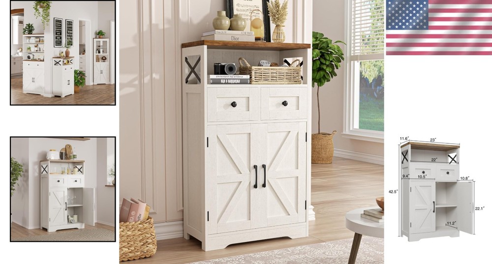 Charming Farmhouse Pantry Cabinet with Versatile Storage & Elegant Design ‹ › ‹ › ‹ › ‹ › ‹ › ‹ › ‹ › ‹ › ‹ › ‹ › Charming Farmhouse Pantry Cabinet Add a touch of vintage elegance to your home with this exquisite pantry cabinet, perfect for enhancing your decor. Features: Farmhouse Storage Cabinet: Antique wooden finish, barn doors, and metal crossbar decoration for a timeless design. Ample Storage Space: 1 open shelf, 2 stylish doors, and 2 functional drawers for organized storage. Functional Accent Cabinet: Versatile use as a kitchen pantry, coffee bar station, hutch cupboard, wine cabinet, or home office organizer. Sturdy and Stable: Constructed with engineered wood, ensuring stability and durability. Supports up to 110lbs. Easy Assembly: Comes with all necessary hardware and a step-by-step manual for effortless construction. Benefits: Transform your living space with vintage charm. Keep your home organized and clutter-free. Durable construction for of reliable service. Multiple uses to suit your lifestyle and needs. Why choose our Charming Farmhouse Pantry Cabinet? Elevate your home’s ambiance with the exquisite charms of our farmhouse pantry cabinet. With an elegant antique finish and versatile storage options, it promises not just functionality but also a stylish statement that complements any room. Whether you need a kitchen pantry or a stylish storage solution, this cabinet is designed for your convenience and delight. Experience the blend of practicality and beauty in your home with this remarkable treasure. Order yours today and embrace the serenity of farmhouse living! Shipping Free & Fast Shipping - We offer free shipping to most of the USA with a normal delivery time of 3-7 days. However, due to the current situation, additional delivery time (up to 3 weeks) may be required for some items. Alternative Carriers - We may use alternative carriers (e.g. USPS, FedEx, UPS, etc.) to ensure your package arrives safely and on time. Due to the use of multiple carriers, we are unable to provide a tracking number automatically. Handling Time - Orders are processed and shipped within 1-2 business days of receiving cleared payment. Shipping Restrictions - Shipping to Alaska, Hawaii, Puerto Rico, Guam, and other US territories may incur shipping charges or delivery restrictions. Please contact us before ordering, or your order can be refunded/cancelled. State Restrictions - There may be restrictions based on your state of purchase. For example, certain items may not be shipped to California due to state regulations. Contact for Tracking Updates - If you require tracking updates or have any concerns about the delivery of your order, please feel free to contact us, and we will be happy to assist you. Return 30-Day Hassle-Free Returns - We want you to be completely satisfied with your purchase. If you are not, you can return the item within 30 days of receiving it for a full refund or exchange. Easy Return Process - To start a return, simply contact us and we will provide you with a prepaid return shipping label and detailed instructions. Restocking Fee - There are no restocking fees for returns. However, the buyer is responsible for return shipping costs if the return is not due to a seller's error. Refund Processing Time - Refunds will be processed within 5 business days of receiving the returned item in its condition. Payment We accept all major credit cards, PayPal, and Apple Pay for your convenience. Your payment information is secure and encrypted to ensure a safe and seamless transaction. Please complete your payment within 3 days of purchase to avoid any delays in shipping. Feedback Your feedback is extremely important to us. We strive to provide the best products and customer service possible. If you are satisfied with your purchase, please take a moment to leave us a positive review. If you have any concerns or issues with your order, please contact us before leaving negative feedback. We are committed to resolving any problems and ensuring your satisfaction. Contact Us If you have any questions or concerns, please feel free to out to our customer support team. You can contact us through the eBay messaging system. We are available Monday to Friday, 9:00 am to 5:00 pm EST, and we will do our best to respond to your inquiry within 24 hours. Buy it now and enjoy a pleasant shopping experience! Unit Quantity: 41.5 lb Material: Engineered Wood Mounting: Free Standing,Floor Mount Department: Unisex Baby & Toddler,Kids,Teens,Adults Room: Bathroom,Dining Room,Home Office/Study,Kitchen,Living Room Features: With Doors,With Drawers,Lined Set Includes: Shelves Item Height: Farmhouse Storage Cabinet Item Length: Farmhouse Storage Cabinet Item Width: Farmhouse Storage Cabinet Type: Storage Cabinet Door Style: Slab Color: White Number of Shelves: 1 Item Depth: 11.5 in Item Weight: 41.5 lb Handle Material: Stainless Steel Style: Farmhouse Number of Drawers: 2 Number of Doors: 2 Number of Items in Set: 1 Finish: Wooden Finish Distance from Floor to Bottom: 4 in Shape: Rectangular
