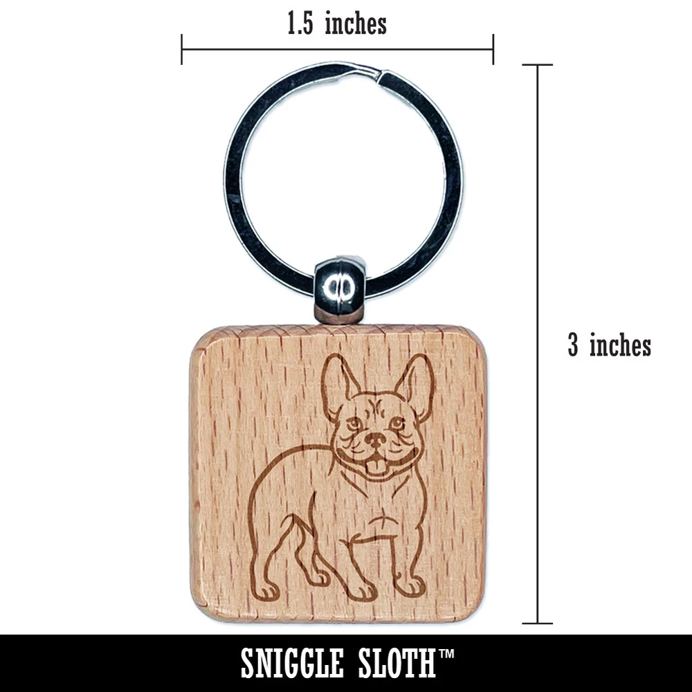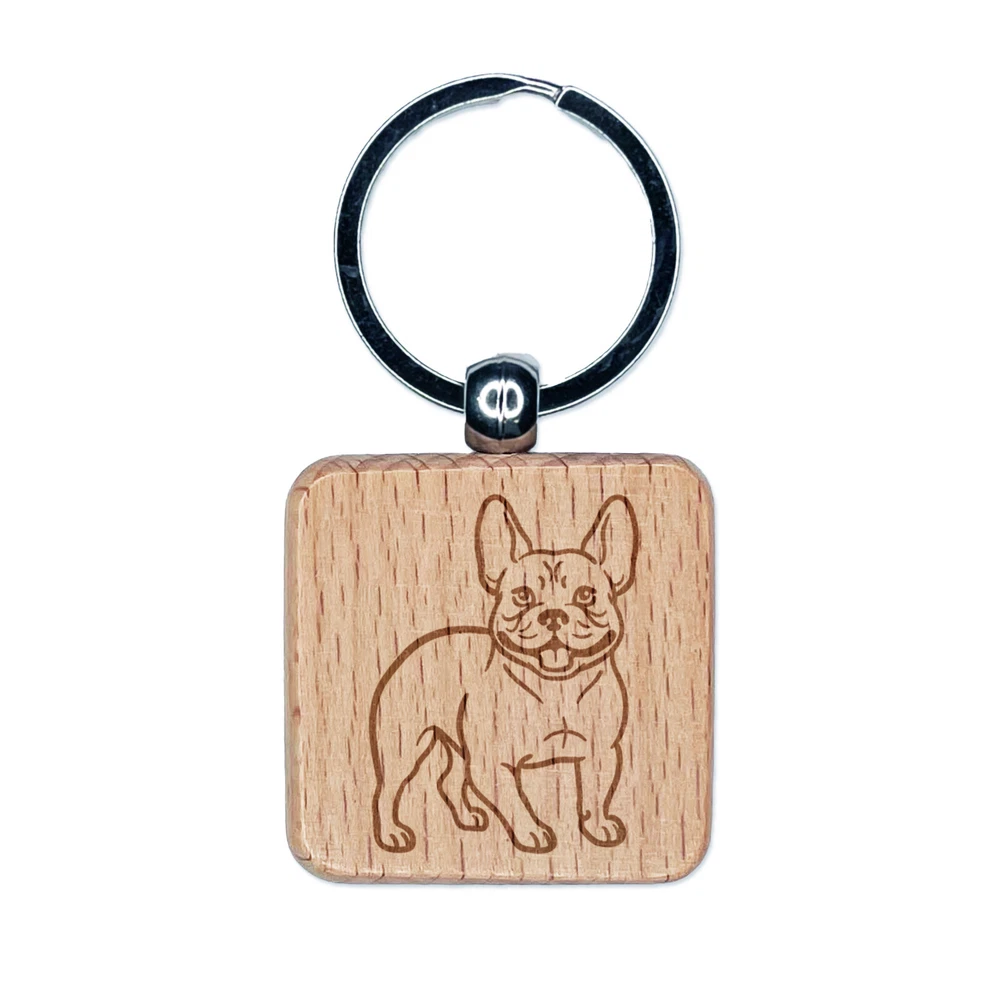 Charming Frenchie French Bulldog Pet Dog Engraved Wood Square Keychain Tag Charm
