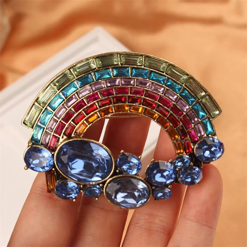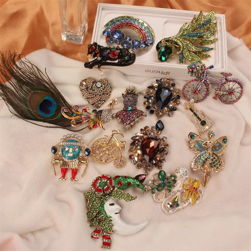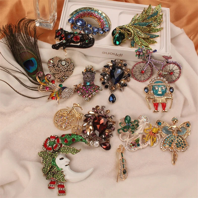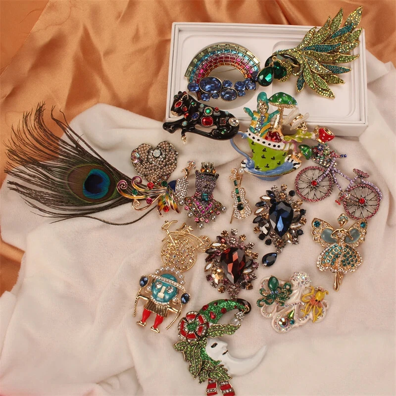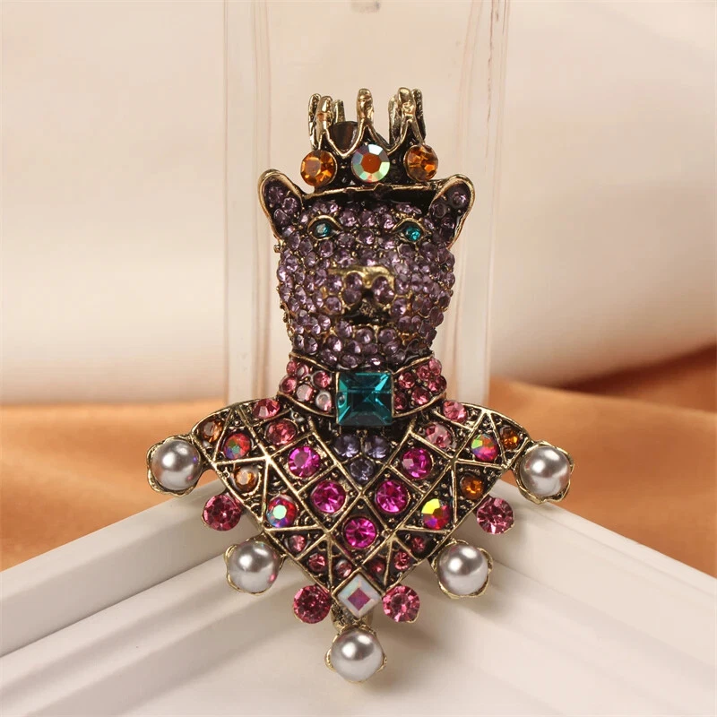 Charming Vintage Peacock Rainbow Bear Fairy Brooches Baroque Palace Corsage Pin