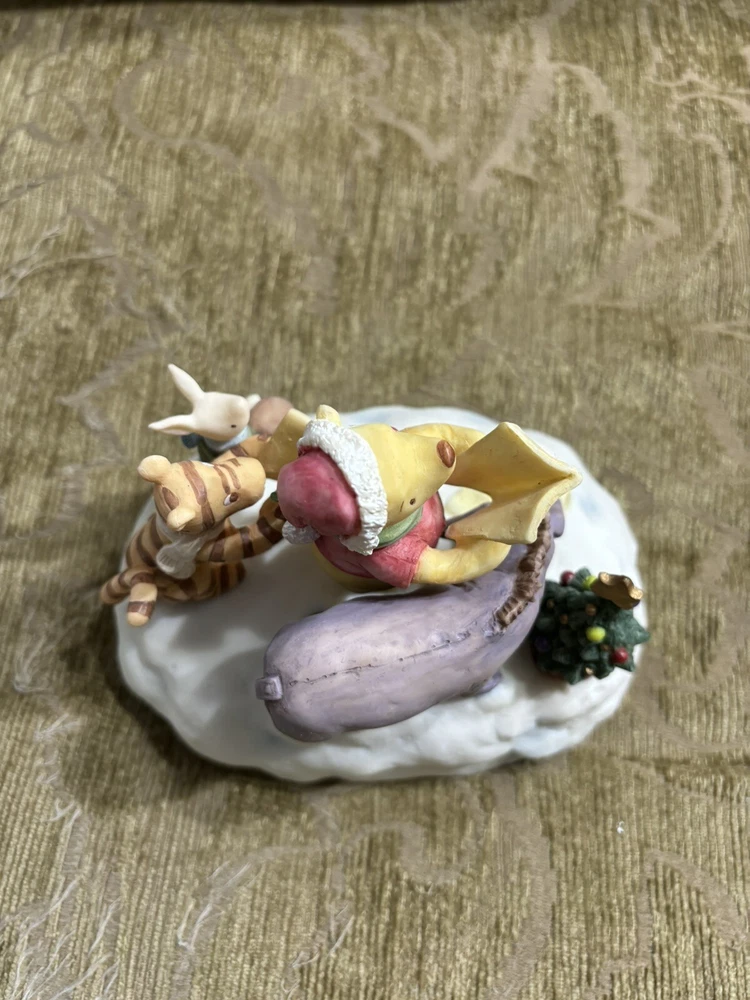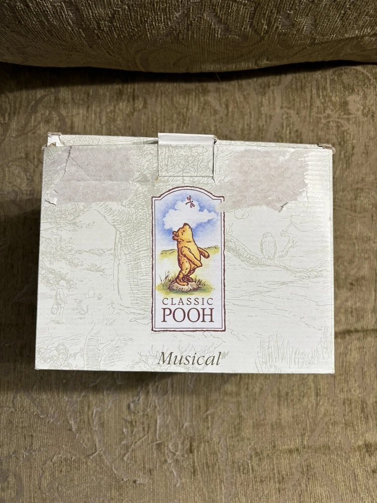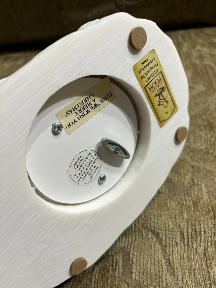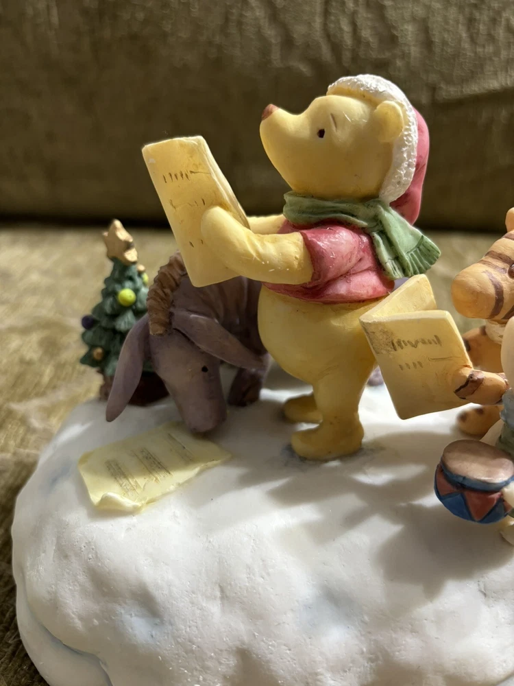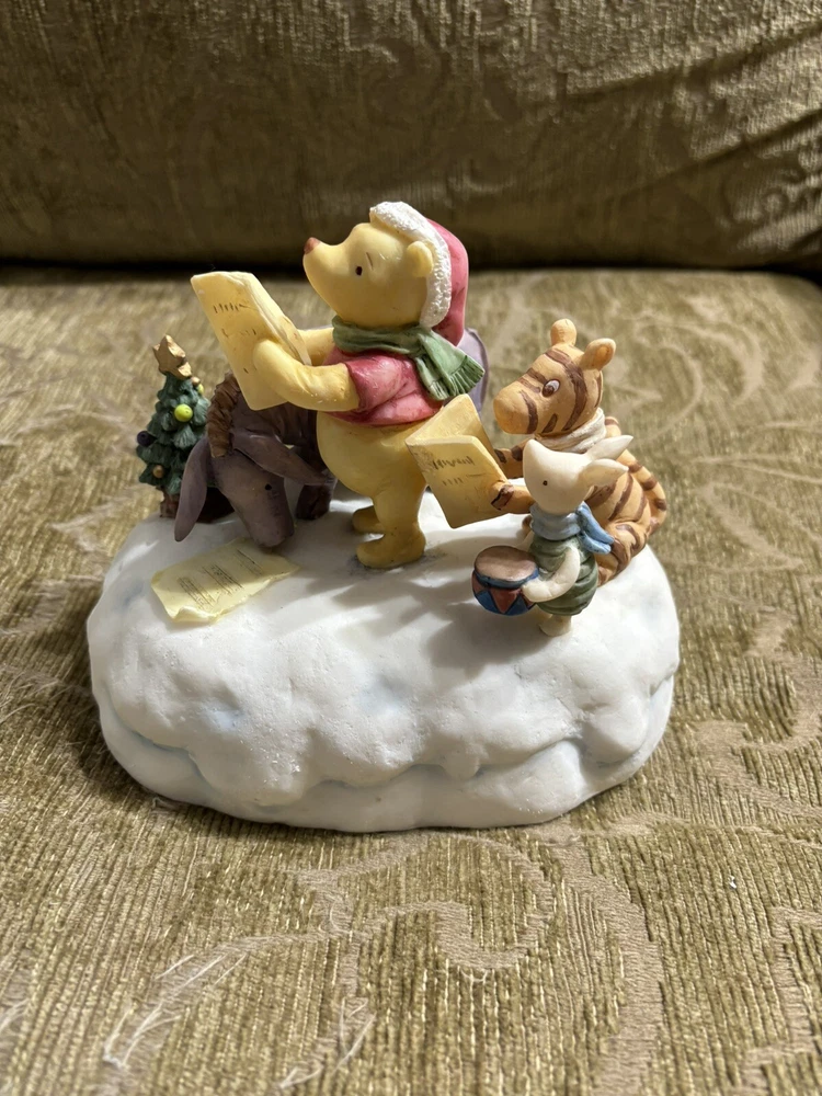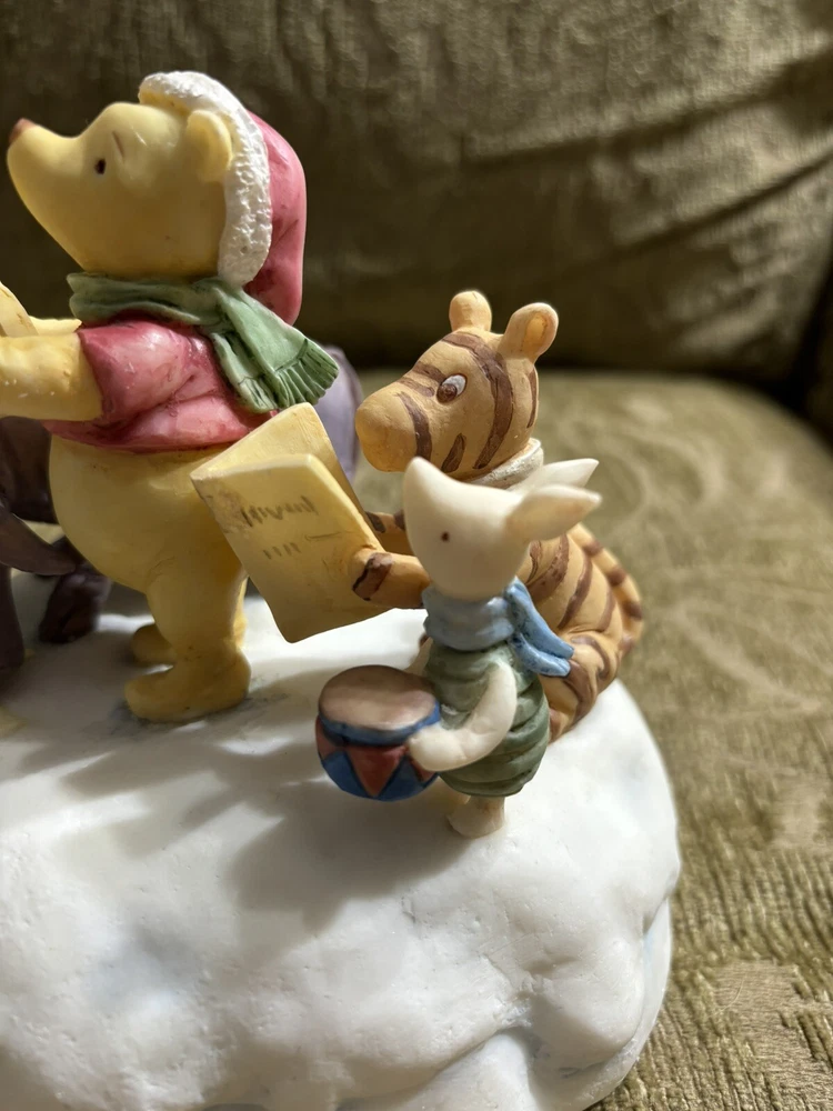 This Charpente Christmas Caroling Classic Pooh Musical Figurine Sculpture is a must-have for any Disney or Winnie the Pooh fan. The beautifully crafted figurine features Pooh and his friends caroling in classic holiday attire, with a musical tune that adds to its charm. The sculpture is made by Charpente, a renowned brand in the collectibles industry. It is a perfect addition to any collection, and is sure to bring joy and nostalgia to anyone who sees it. Get this unique piece now and add a touch of holiday magic to your home or office. In good shape. Could use a good cleaning. Comes with the bad as shown. Box is not in perfect shape as shown.