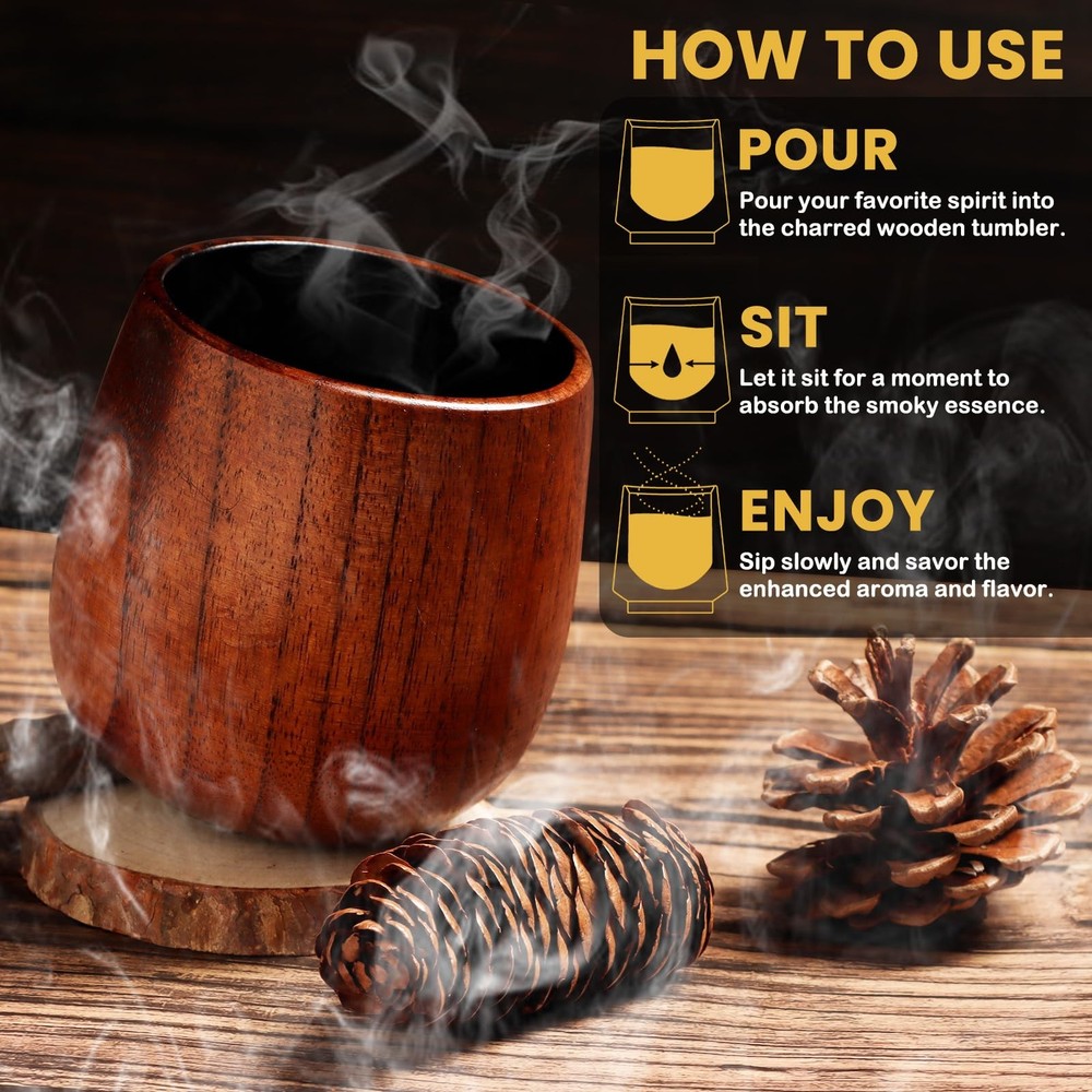 Experience Tradition and Innovation with Wooden Whiskey Glasses Elevate your whiskey tasting to a master level with 's meticulously handcrafted charred wooden whiskey glasses. Designed for the discerning connoisseur, these glasses are not just drinkware—they're a bridge to the past, crafted with modern precision to enhance every sip. Flavor-Enhancing Cup: Crafted to preserve and enhance the natural flavors of bourbon, mimicking the traditional oak barrel aging process. Perfect for savoring the rich, complex notes of your favorite spirits. Exceptional Durability: Forget the fragility of standard glass. glasses are crafted from robust, high-quality wood, designed to resist breakage and withstand the test of time, ensuring that your investment not only lasts but becomes a part of countless cherished moments. Ideal Gift for Whiskey lovers: Packaged in eco-friendly, gift-ready packaging, our glasses are the perfect birthday, Thanksgiving, Chrismas, Valentines Day and fathers day gifts for bourbon lovers, whiskey gifts for men, husband, dad, brother or boyfriends Unique Artistry: No two glasses are alike; enjoy a one-of-a-kind drinking experience that elevates any home bar collection. Simplified Maintenance: Keeping your glasses in pristine condition is as easy as gently handwashing them and air-drying upside down. This care ensures the wood’s longevity and preserves its natural beauty and functionality.