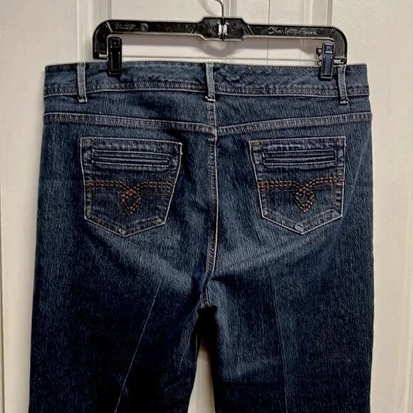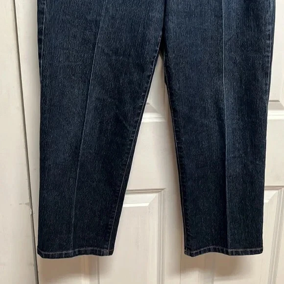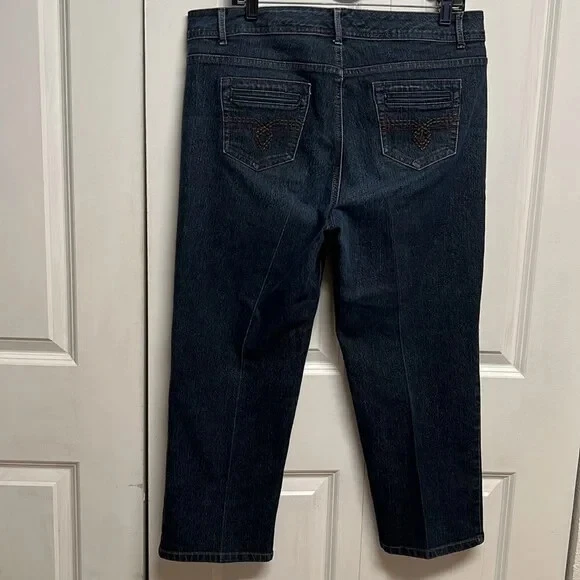 Get ready to rock your fashion game with these Charter Club Women's Jeans in a medium blue wash. These jeans feature a flattering mid-rise fit with a modern straight cut and a cropped length that is perfect for any season. The 5-pocket design includes a zip and button closure for easy wear, while the studded, embroidered, and button accents add a touch of personality. Made from a comfortable and breathable cotton blend with a dark wash, these jeans are easy to care for and also have shaping and stretch features for a flattering fit. Complete with a belted waist and a solid pattern, these jeans are a classic and versatile addition to any wardrobe. Don't miss out on this must-have piece from the Charter Club line. very Light faded Otherwise very good pre owned condition 75% cotton 23% polyester 2% spandex stretch denim machine washable 36’ around waist inside button 43’ around hips 11.50’ front rise 25’ leg inseam 16’ around leg bottom nice for Spring and Summer