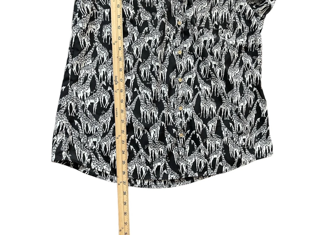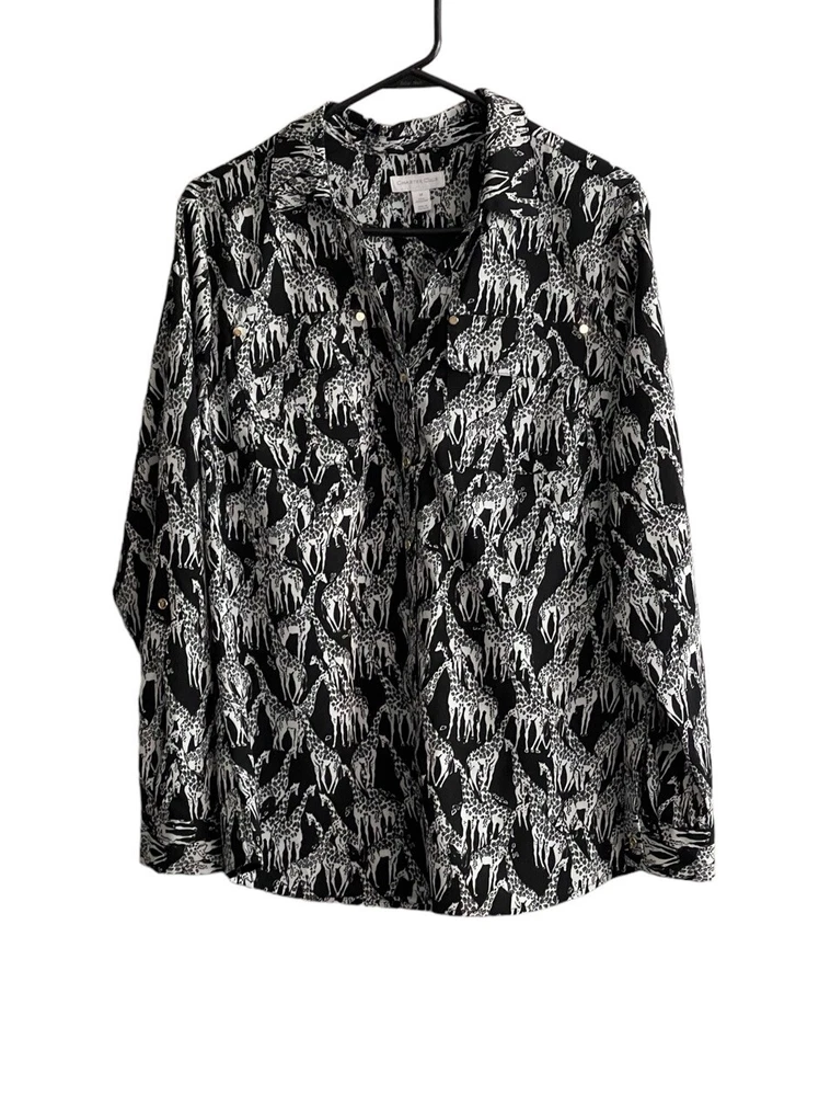 Charter Club Black Giraffe Print Button Up Long Sleeve Blouse Size Medium Safari. Condition is New with tags. Shipped with USPS Ground Advantage.