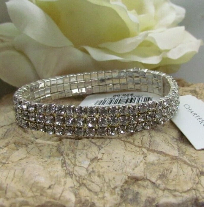 Charter Club Silver Tone Clear Crystal Stretch Bracelet $20.00 New