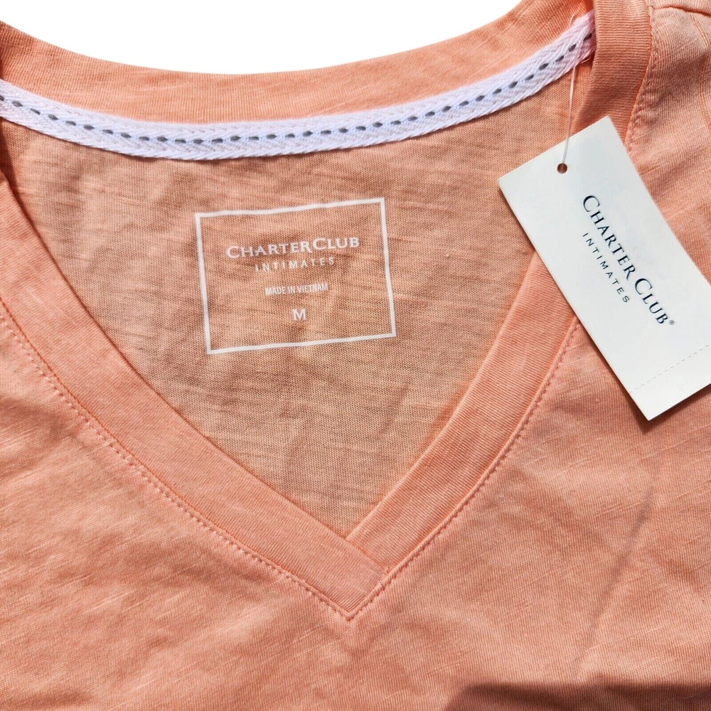 Charter Club Women Coral Cotton Everyday Breezy V-Neck Pajama T-Shirt Size M New with tags Classic V-neck sleep T-shirt Pullover styling Soft knit fabric Short sleeves 95% cotton / 5% polyester Machine washable