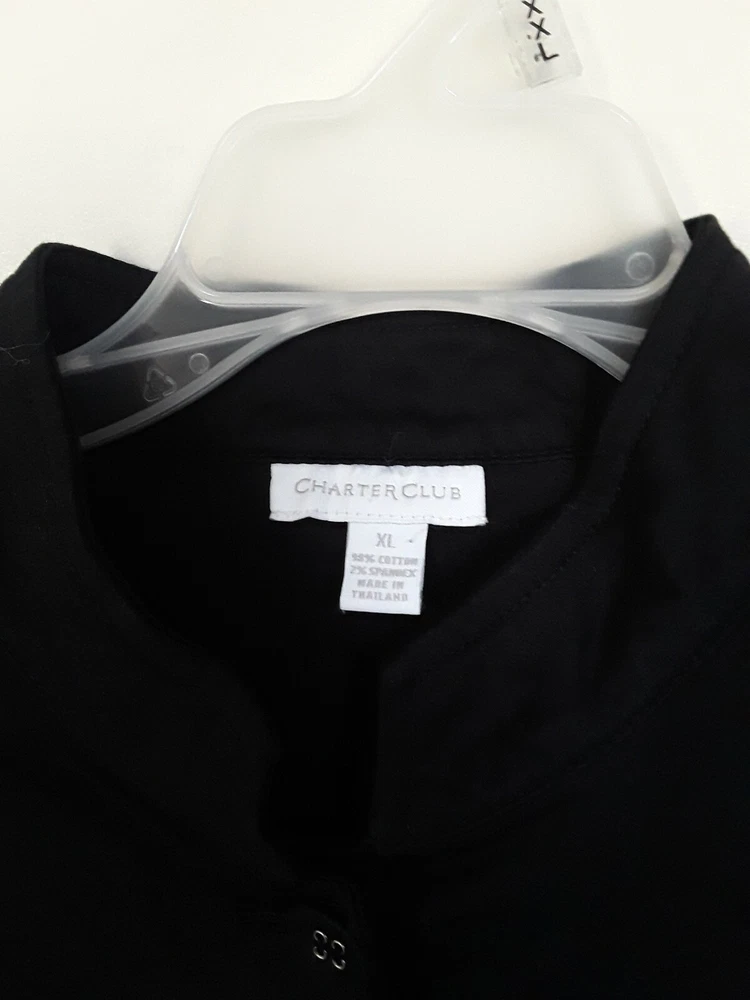 Charter Club Women Jacket, Deep Black Sz XL Armpit-armpit: 22" Sleeve Length 18" Length: 24" AT Combined Shipment: USA : Highest item shipping cost + $3.00. for each subsequent item.Or, you can purchase as many items as you choose and pay the flat rate of $18.75 for your Priority Mail Large Flat Rate Box which covers your entire order. Please read the disclaimer below. INTERNATIONAL SHIPMENTS: Highest item shipping cost {+ Item weight.} for each subsequent item. Please read the disclaimer below. DISCLAIMER on Shipping Costs: Our intention is to keep our shipping costs as low as possible. However, depending on the item purchased (weight) and the destination, shipping rates can vary; especially 30 Day?s No Questions Asked Returns Policy: Your satisfaction is very important to us. We have a 30 days NO QUESTIONS ASKED returns policy. The item must be returned in the condition in which it was purchased. If there are labels/tags they should not be removed. If they are, the item will be sent back to you. ANY SHIPPING COSTS WILL NOT BE REFUNDED. BOTH WAYS, receiving and any returns. Please contact us for the return shipping address and authorization. ALL COMMUNICATIONS MUST BE IN WRITING & TAKE PLACE THROUGH THE EBAY SITE ONLY. No private direct email correspondence. A customer care rep. will respond to you within 24 hrs (Mon-Fri). Once we have received the merchandise and inspected it, please allow 72 hours for a refund to be issued. NO See my other listings for more great items! We accept PAYPAL. Also we have a virtual terminal with PayPal through which we can accept Visa, MasterCard, Amex, and Discover. If you do not have a PayPal account, it takes virtually minutes to open International shipments: PLEASE DO NOT PAY until we determine your shipping costs. Most of our items also have an International Flat-Rate. Although, if due to the destination or the weight we are unable to honor the rate mentioned in the item?s listing, we will cancel your order and leave you positive feedback. Usually we use the US Postal Service. The best international rate for an international shipment is First Class (up to 4 lbs.)If your items exceed 4 lbs. we may pack them into two separate packages (and notify you of this).You still are eligible to take advantage of the combined shipping rates, even if we have packed them into two separate packages. The fees for packaging, shipping, insurance, Customs Duty Charges on international shipments are all the responsibility of the Buyer and are not included in the purchase price. If the item(s) are gifts, we could indicate ?GIFT? on the customs form so you would avoid paying more on duty.